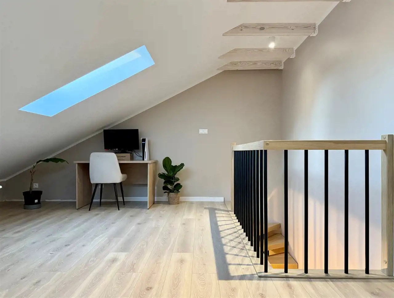 funkcjonalne poddasze o powierzchni 38,86 m2, z możliwością adaptacji, idealne na dodatkowy pokój, biuro, przestrzeń do przechowywania lub strefę hobby;