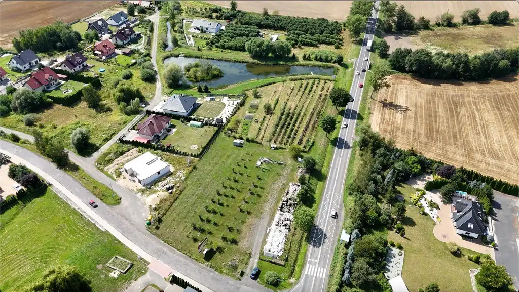 Na sprzedaż działka usługowa lub mieszkalno-usługowa przy stawie rybnym w Gniewomirowicach, o powierzchni 1560 m2 (0,1560 ha).