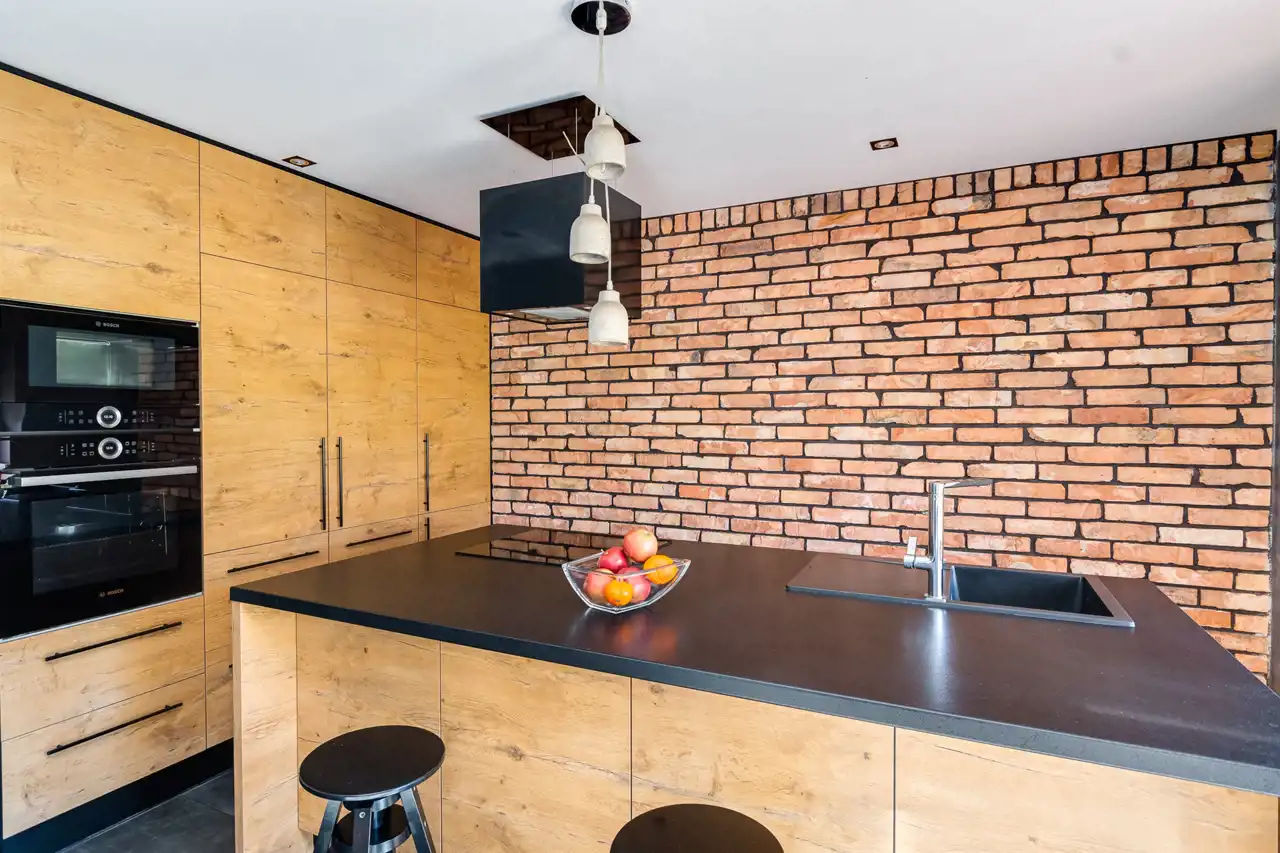 ekskluzywny dom to idealna propozycja dla osób ceniących sobie przestrzeń, luksusowe wykończenie i energooszczędność. Harmonia industrialnej cegły, szlachetnego dębu i nowoczesnego gresu tworzy niepowtarzalny klimat.