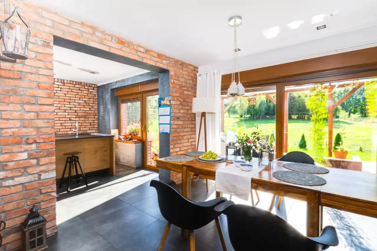 Ta nieruchomość to mistrzowskie połączenie dębowego ciepła, surowej ciętej cegły i nowoczesnego designu, tworzące przestrzeń, która zachwyca na każdym kroku.