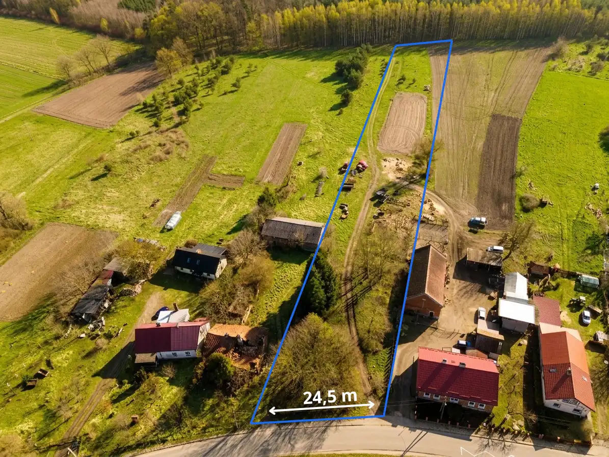 Powierzchnia: 6262 m2 (prostokąt o szerokości frontu 24,5 m).