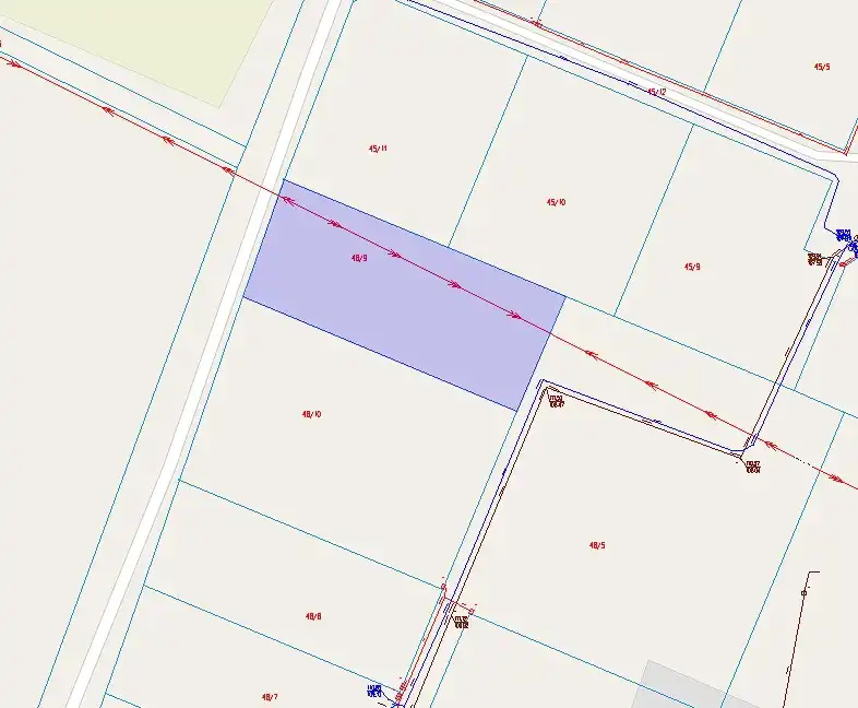 - Media Woda: na działce; Kanalizacja: na działce; Prąd: na działce; Gaz: brak