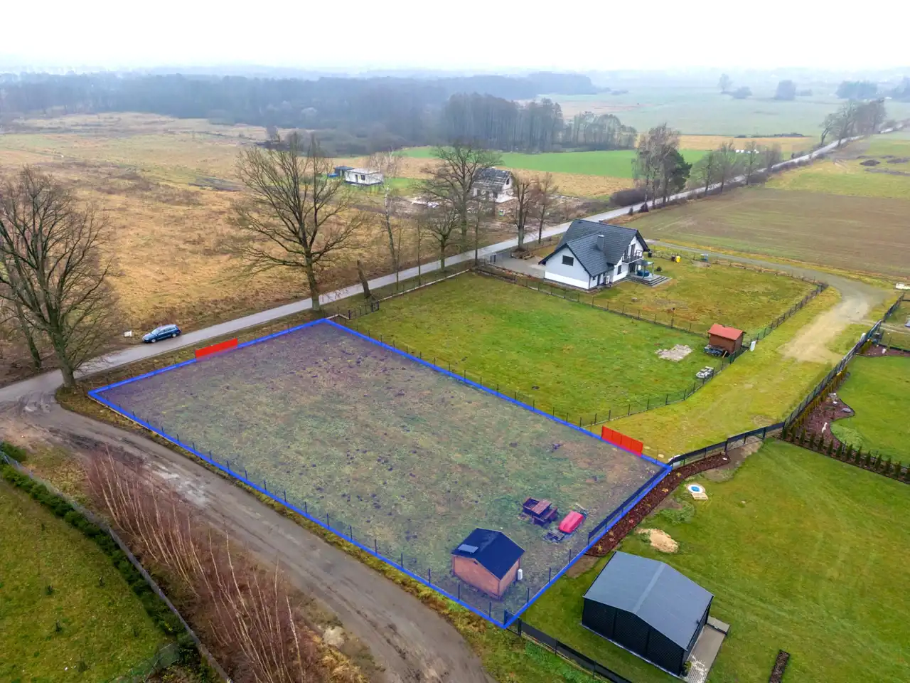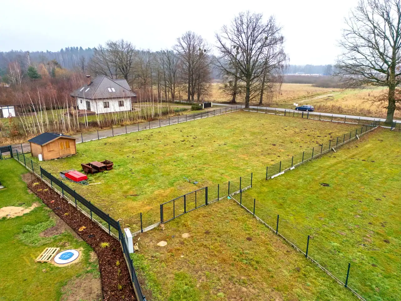 - Bezpieczeństwo ogrodzenie działki: ogrodzona
