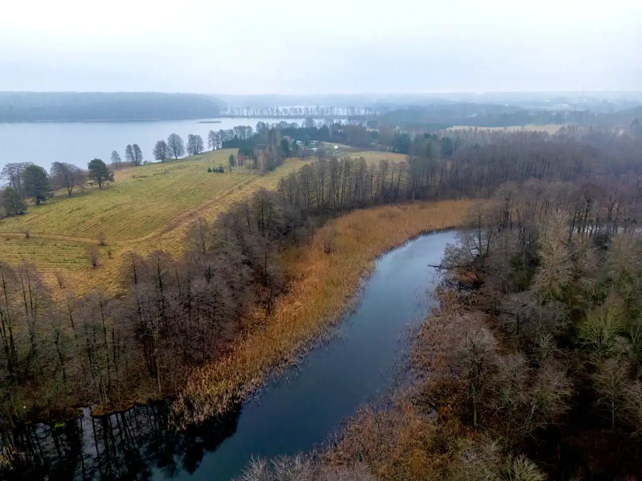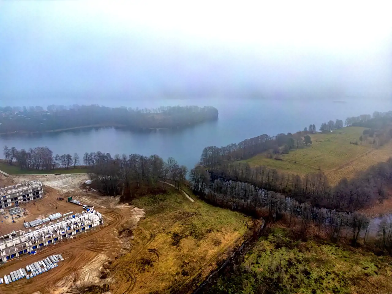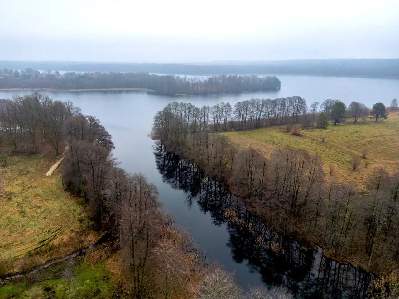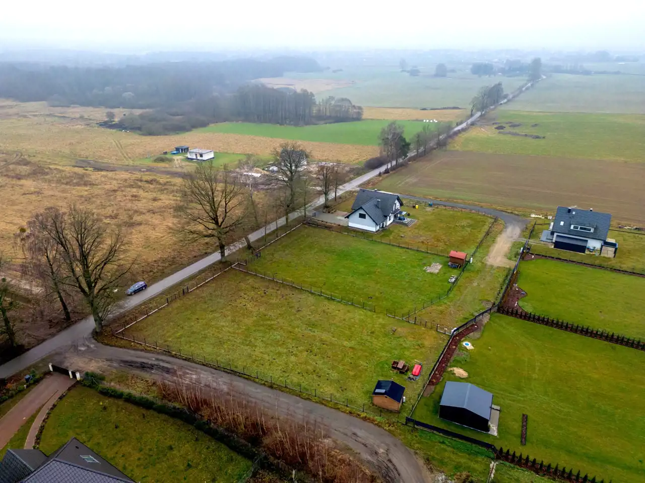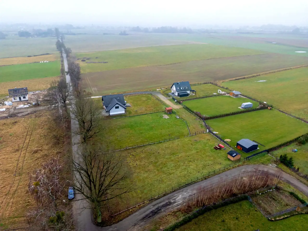 Jeziora nie są widoczne bezpośrednio z działki, co zapewnia większą prywatność i spokój, bez ruchu turystycznego pod samym domem.