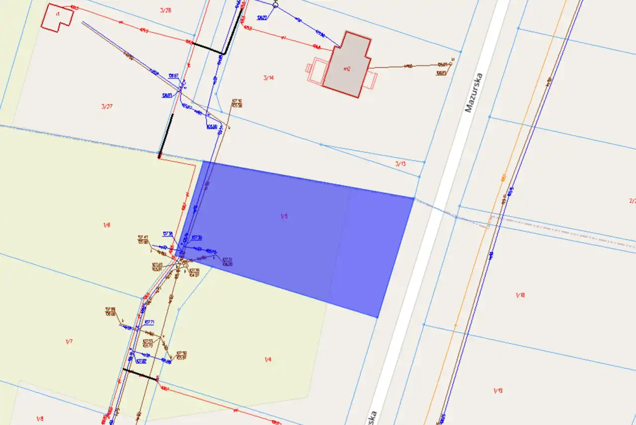 - Media Woda: na działce; Kanalizacja: na działce; Prąd: na działce; Gaz: brak