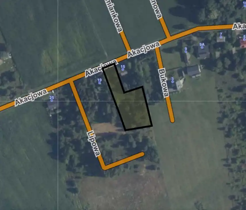 - Działka położona jest w centralnej części miejscowości przy drodze o nawierzchni asfaltowej od strony północnej.