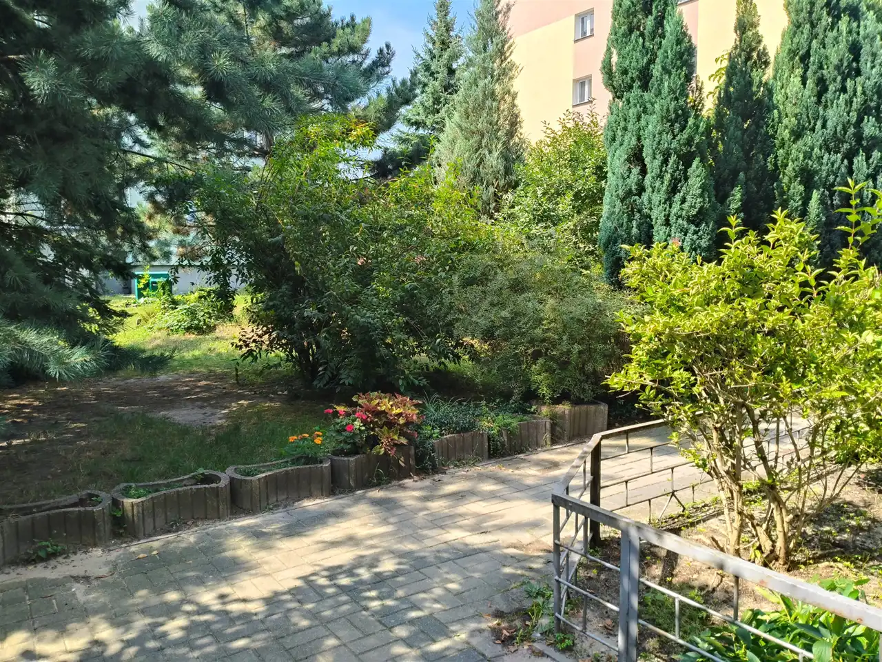Dodatkowo do budynku przynależy wyodrębniony plac postojowy dla aut osobowych, zamykany szlabanem. Blok znajduje się na osiedlu, które otoczone jest mnóstwem zieleni, widok z za okien na drzewa iglaste i ogródek. Mieszkanie znajduje się ok. 600m od stacji PKP i od centrum miasta, to znakomita oferta np. dla tych, którzy dojeżdżają do pracy koleją.