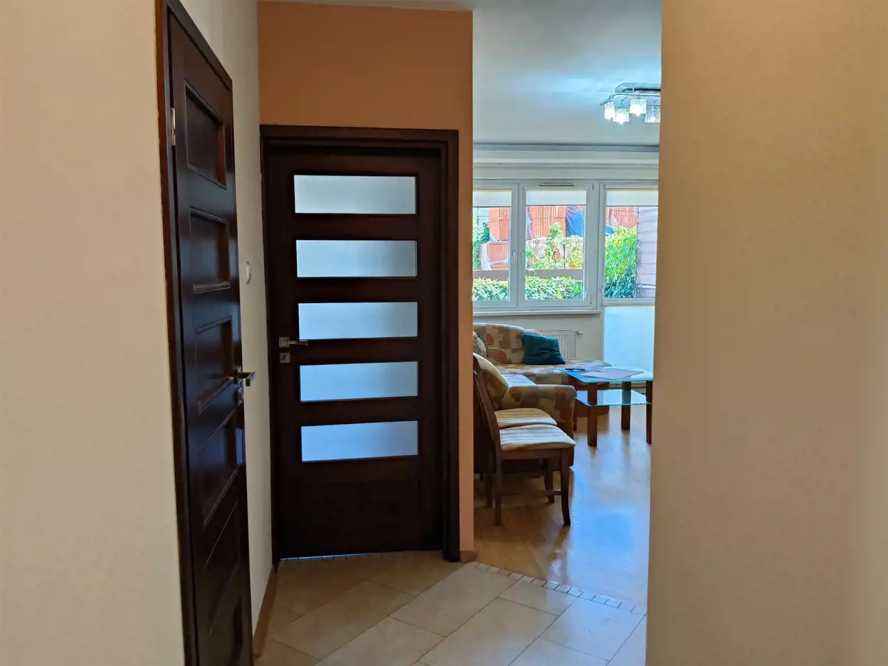Mieszkanie znajduje się na parterze w bloku czteropiętrowym z 2009 r. i składa się z salonu z dużym tarasem o powierzchni 15,1m2, z kuchni w aneksie, sypialni, łazienki z wc i przedpokoju. Mieszkanie zadbane, umeblowane, sypialnia jedynie do odmalowania, w przedpokoju duża szafa typu Komandor, w kuchni zabudowa kuchenna wraz ze sprzętem AGD, na podłogach parkiet oraz gres w przedpokoju. Czynsz w granicach 500zł na jedną osobę, do mieszkania przynależy piwnica o powierzchni 2,2m2 oraz garaż płatny dodatkowo 50.000zł. Blok znajduje przy deptaku w głębi w drugiej linii zabudowy od ulicy Piłsudskiego i z tego tytułu jest to bardzo cicha i komfortowa lokalizacja. Wokół dużo sklepów i usług, niedaleko stacja PKP i ścisłe centrum miasta.