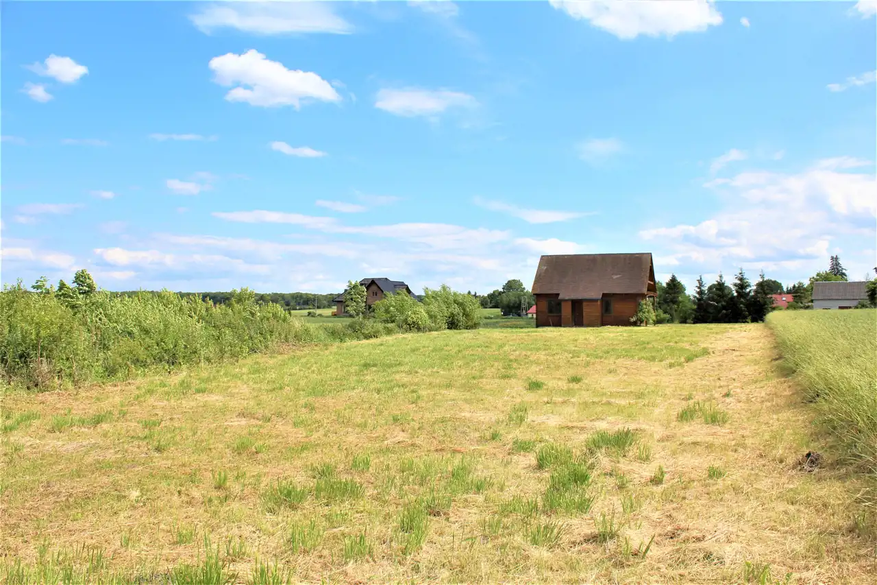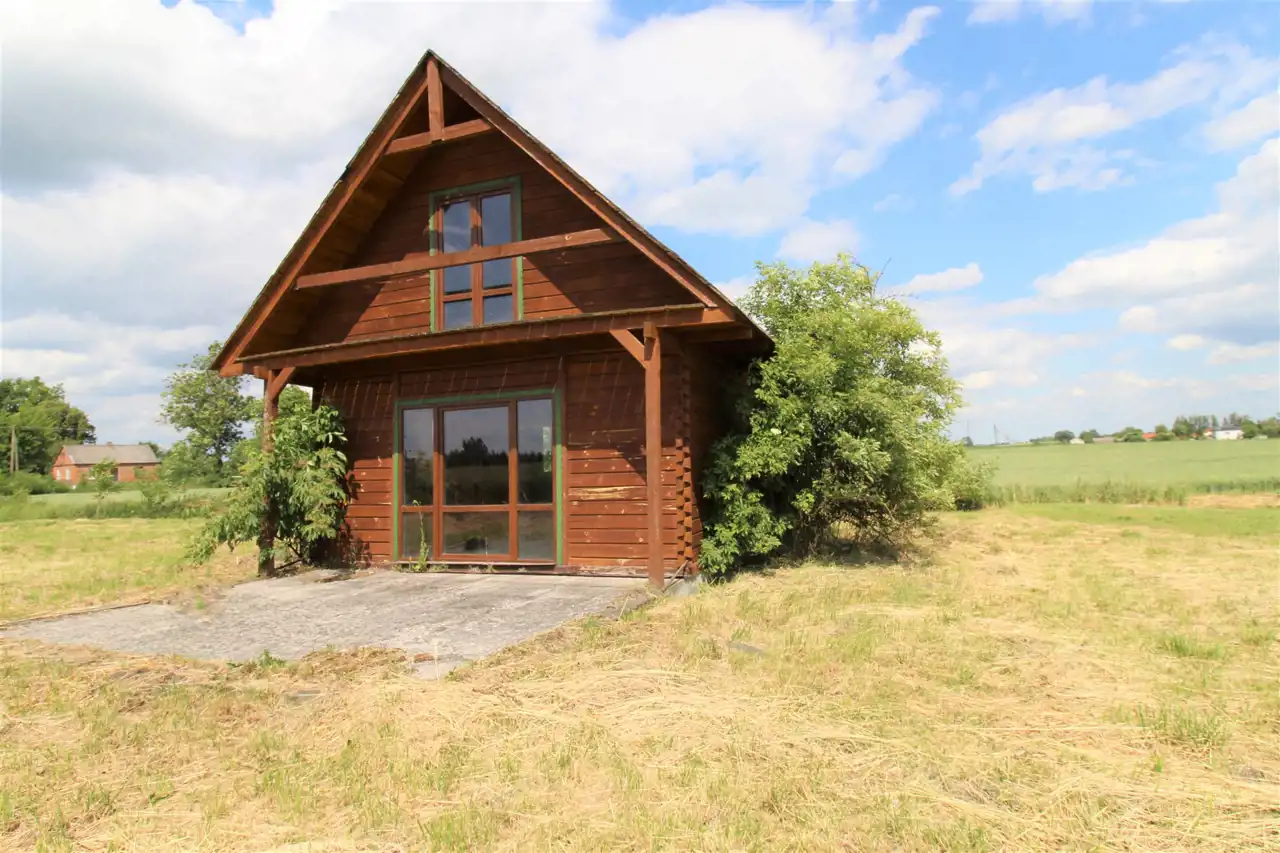oferuje na sprzedaż drewniany parterowy DOMEK z użytkowym poddaszem w stanie surowym zamkniętym na działce o powierzchni 2500m2