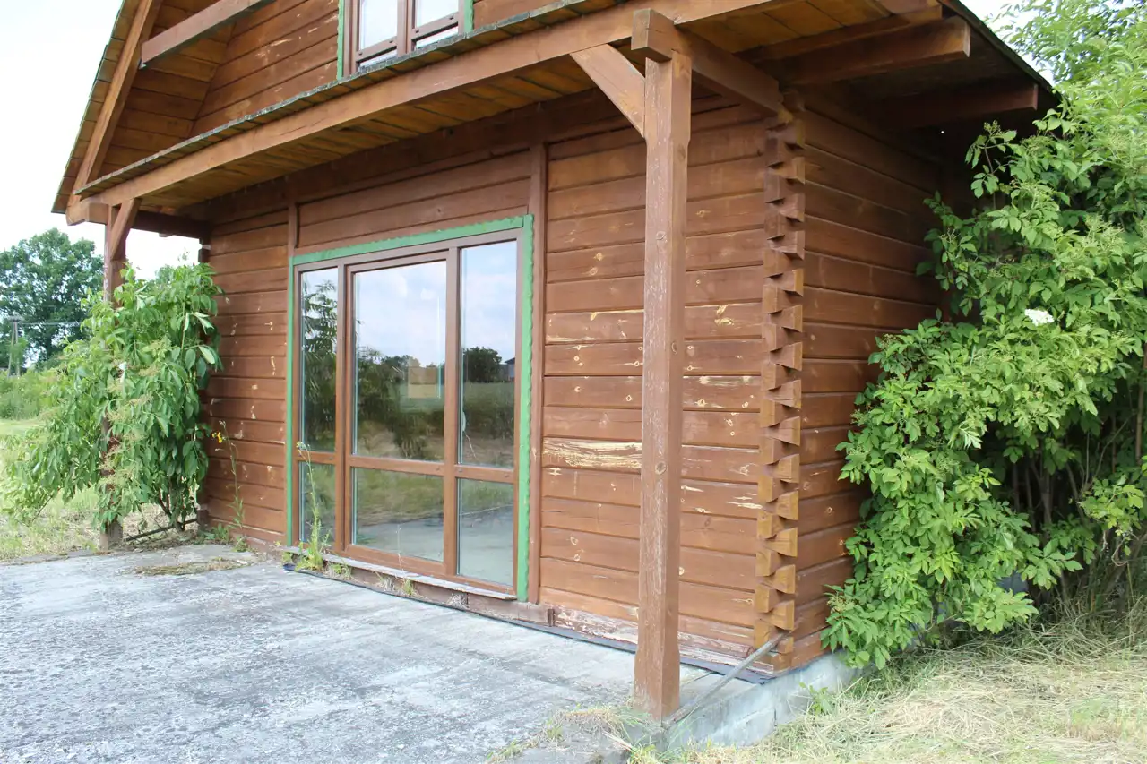 budynek mieszkalny jednorodzinny, drewniany, parterowy z poddaszem użytkowym