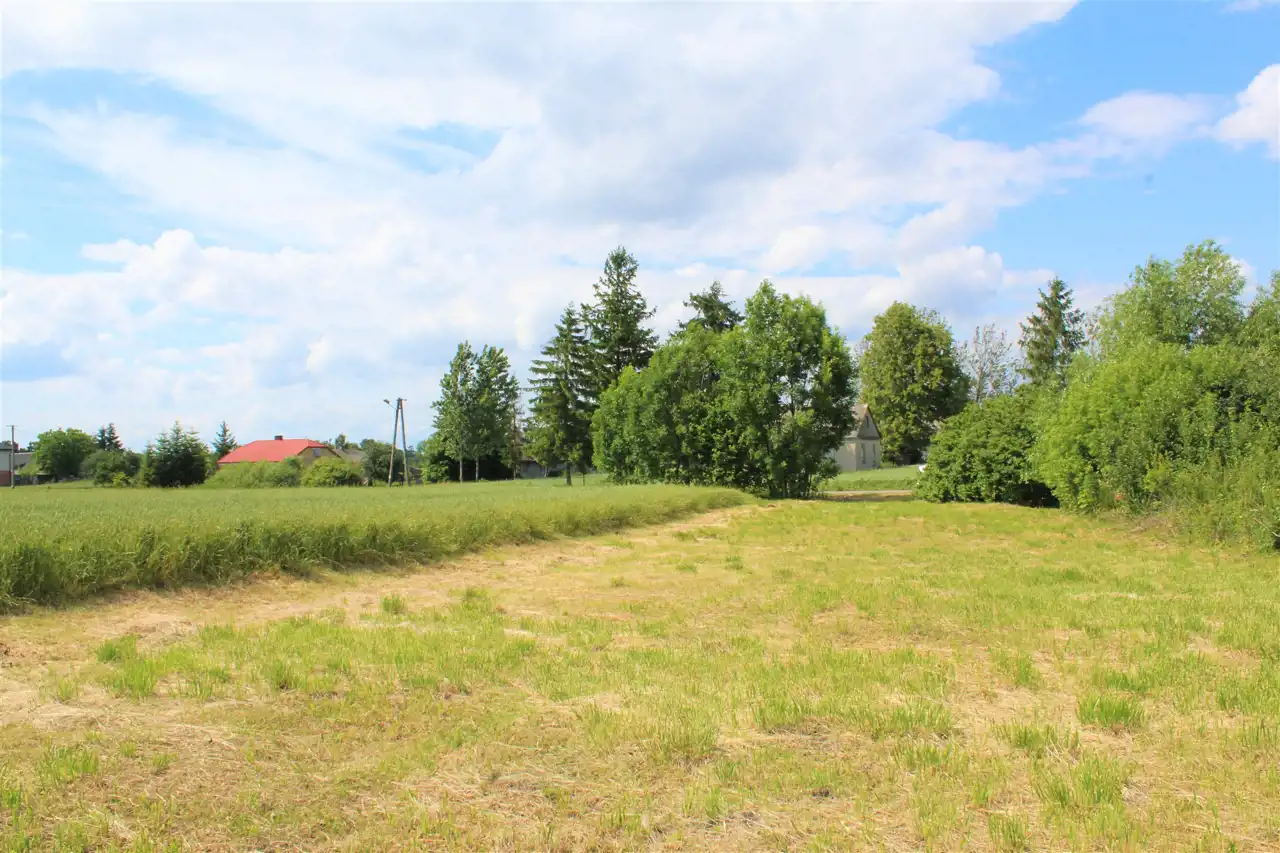 powierzchnia działki: płaska, nieutwardzona, w części porośnięta drzewami nad rowem melioracyjnym