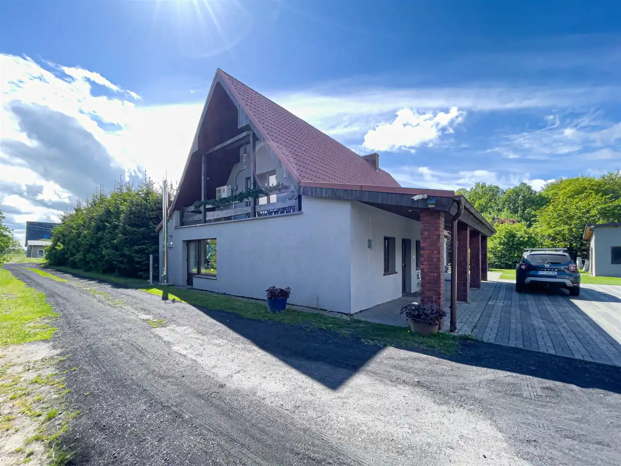 Budynek gospodarczy o pow. 240 m2 z wygospodarowaną częścią pod garaż (dwu a nawet czterostanowiskowy). W budynku gospodarczym zamontowany agregat prądotwórczy o mocy 16 kw wpięty w sieć zasilający w razie konieczności całą instalację domu.
