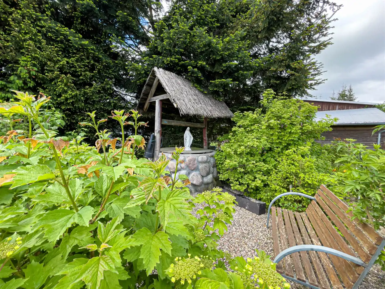 Teren posiadłości w całości ogrodzony oraz oddalony od DK10, liczne nasadzenia drzew iglastych oraz mnogość roślin ozdobnych.