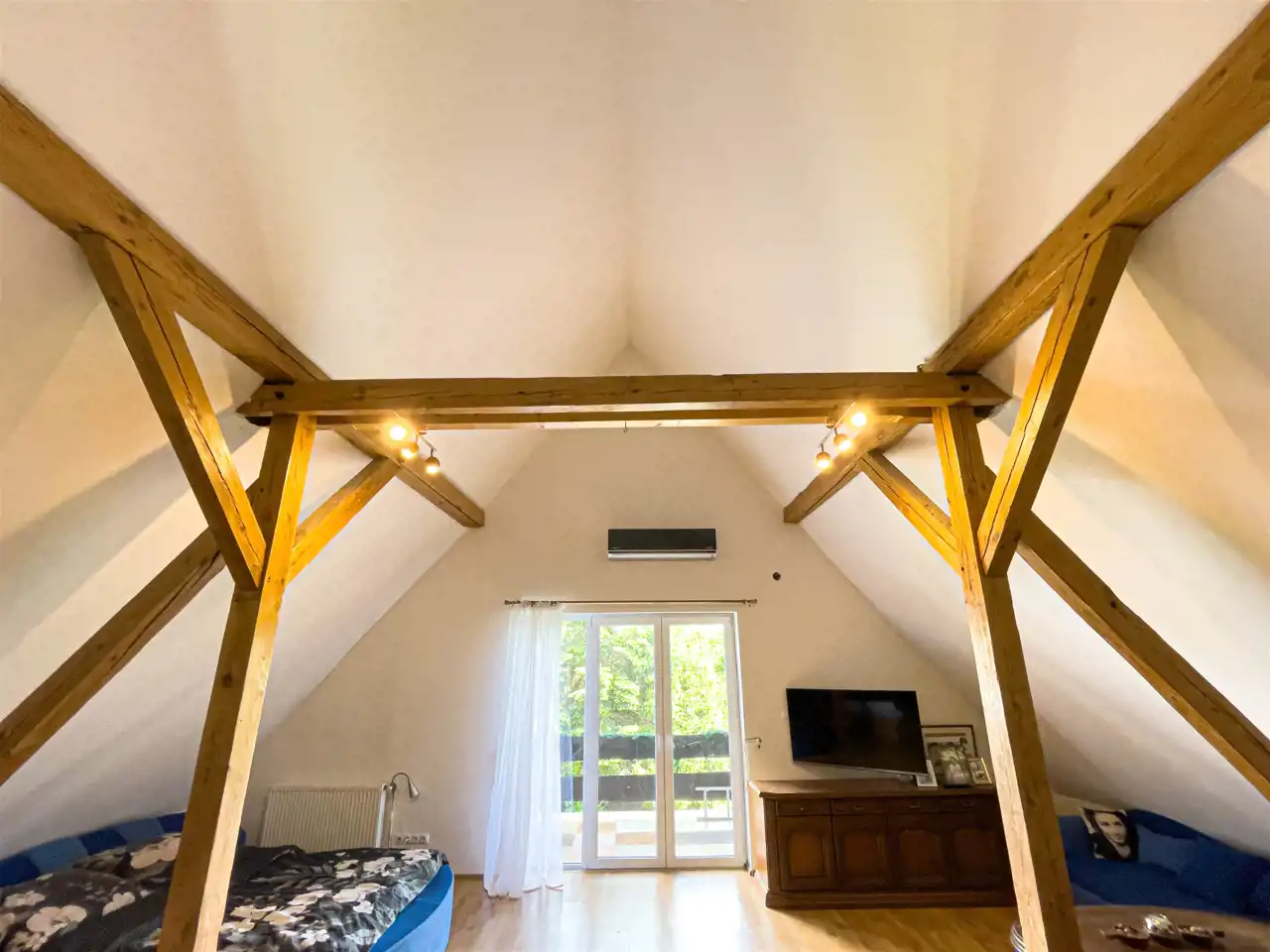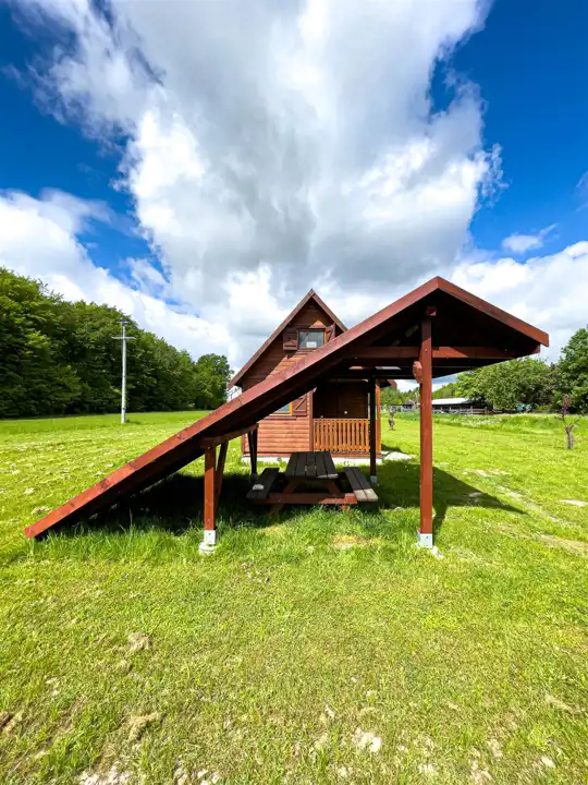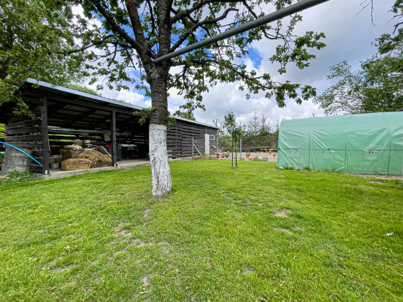 Na działce rolnej posadowiony został domek drewniany (całoroczny), z klimatyzacją z funkcją grzania w pełni wyposażony idealny pod wynajem również długoterminowy, przy budynku wiata.