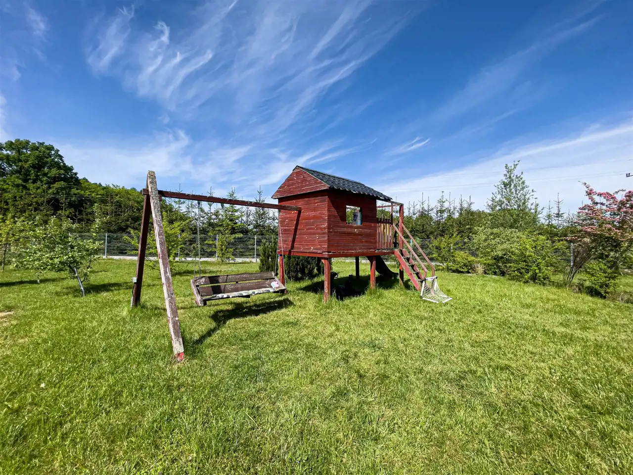 Ogromnym atutem nieruchomości jest duża, zagospodarowana działka gruntu na której poza licznymi dojrzałymi nasadzeniami znajdziemy budynek gospodarczy oraz plac zabaw dla dzieci.