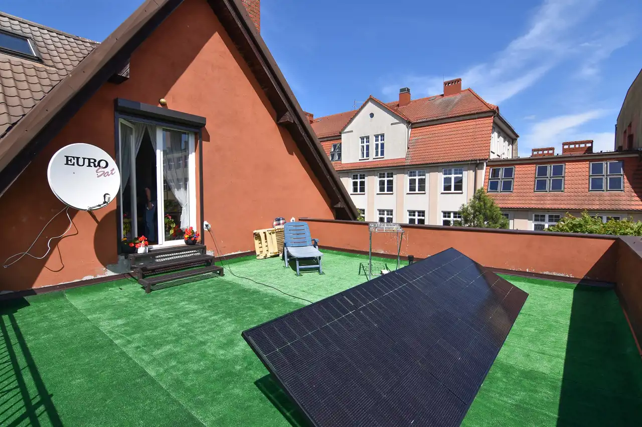 Budynek ma 3 poziomy, jest solidny, zbudowany z cegły i ocieplony wełną mineralną, posiada duży taras. Ogrzewany jest piecem na pelet. Wyposażony w rolety atywłamaniowe.