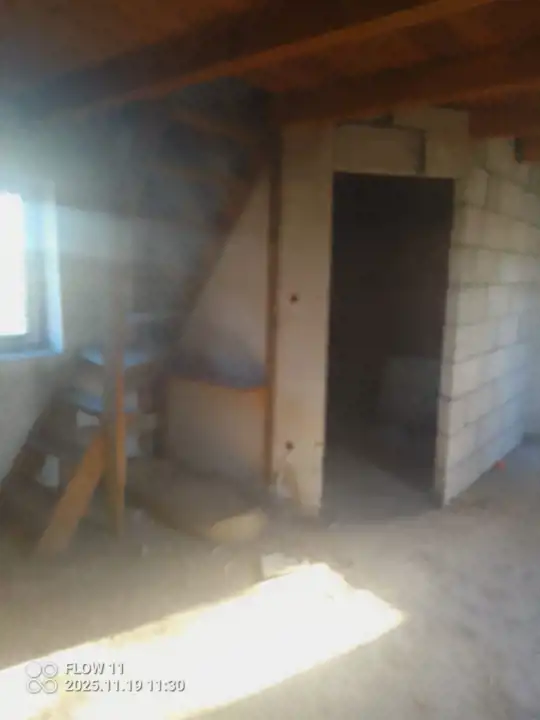 Na dole jest salon z aneksem kuchennym i łazienka, na górze dwa pokoje i garderoba. Prąd znajduje się w drodze przy działce. W pobliskim Młodzieszynie (ok. 3 km) jest szkoła i punkty handlowo-usługowe.