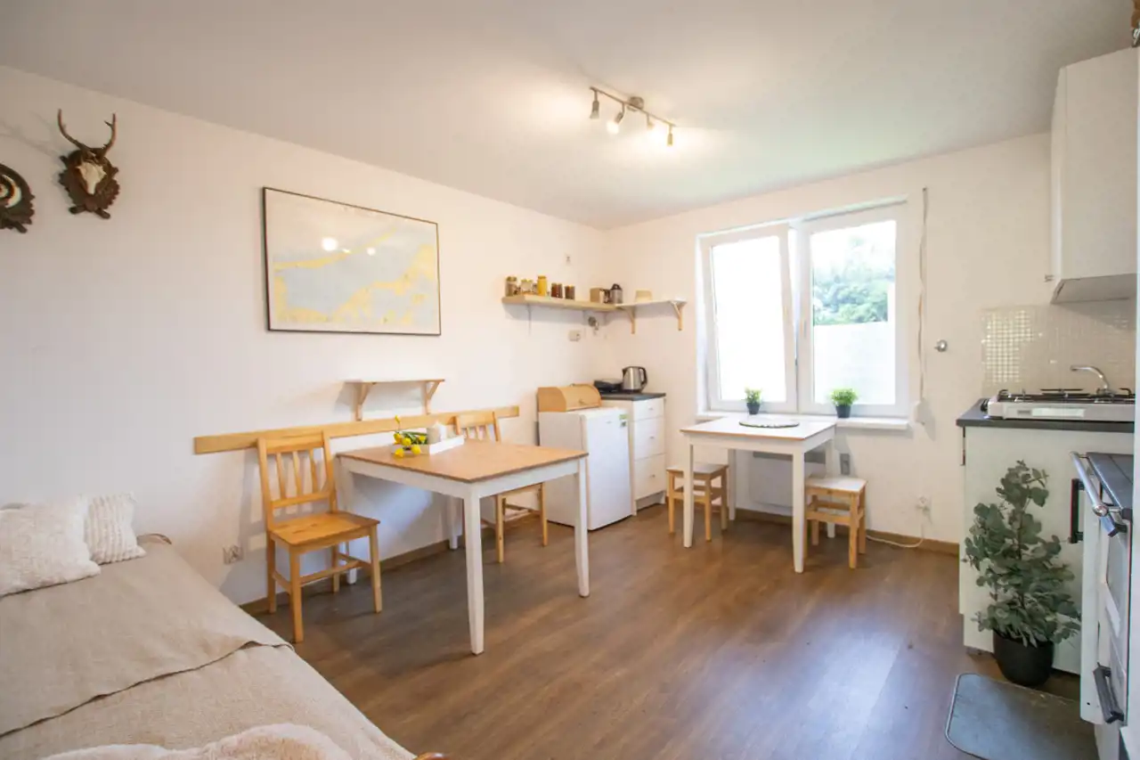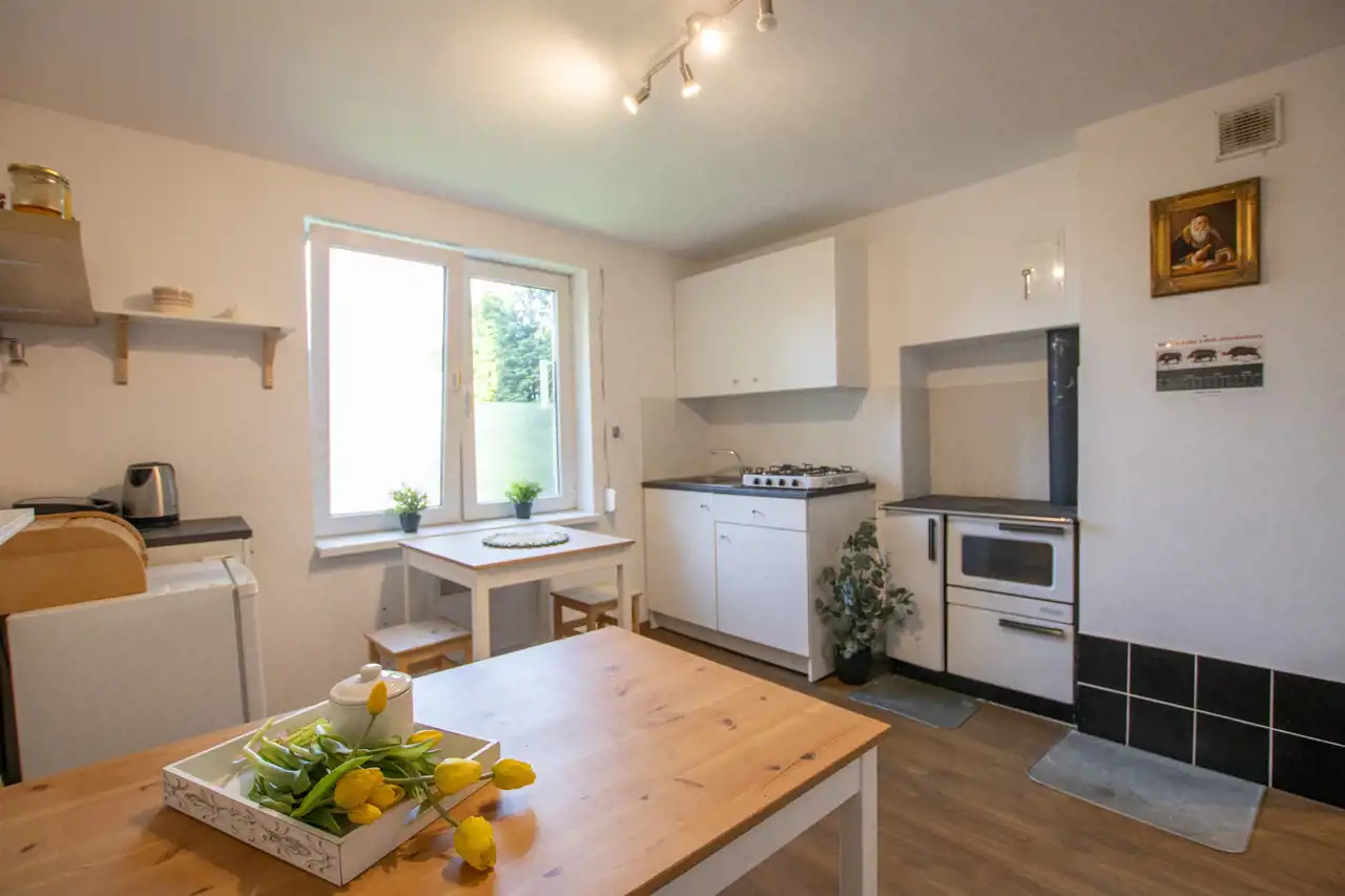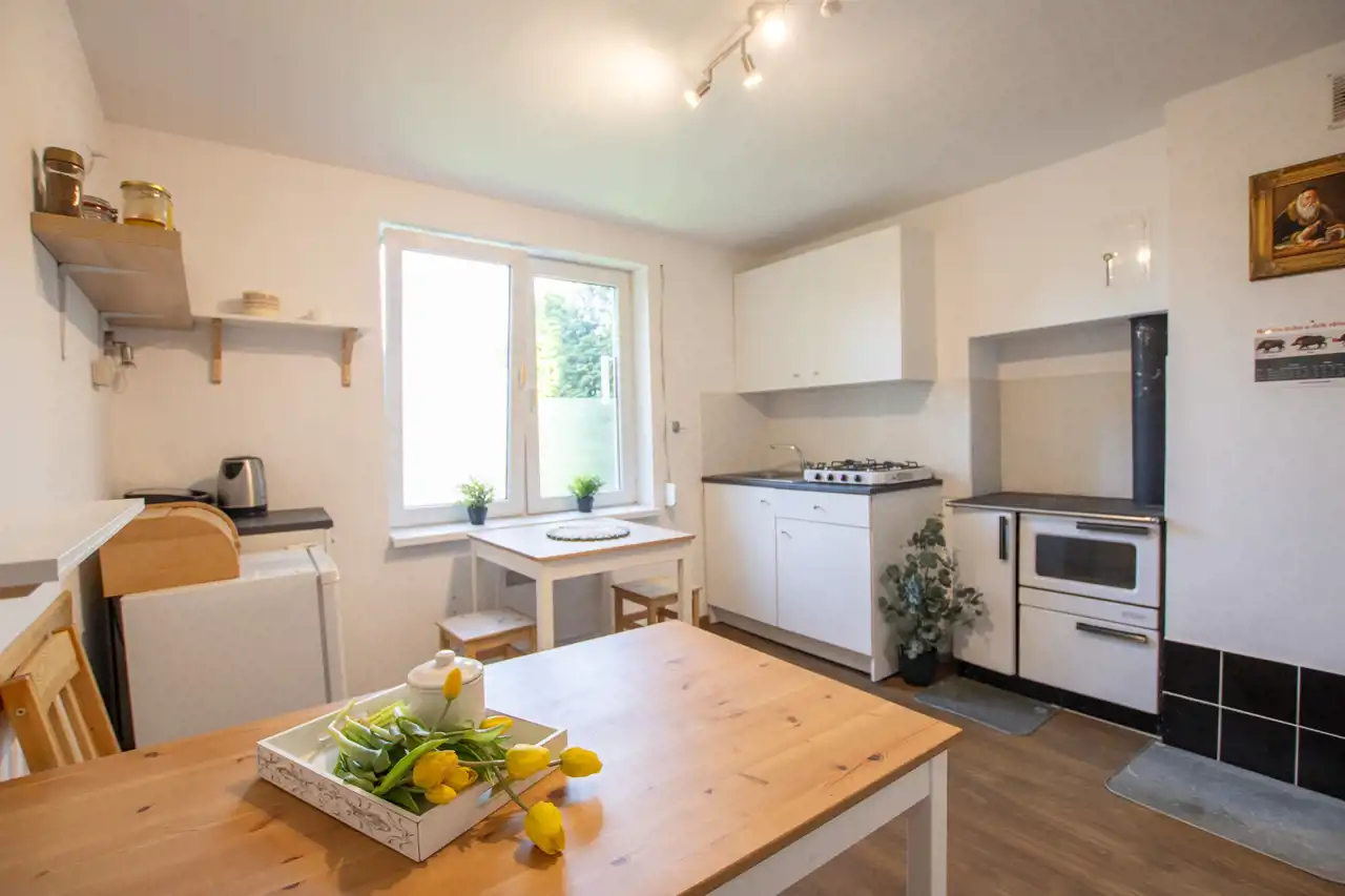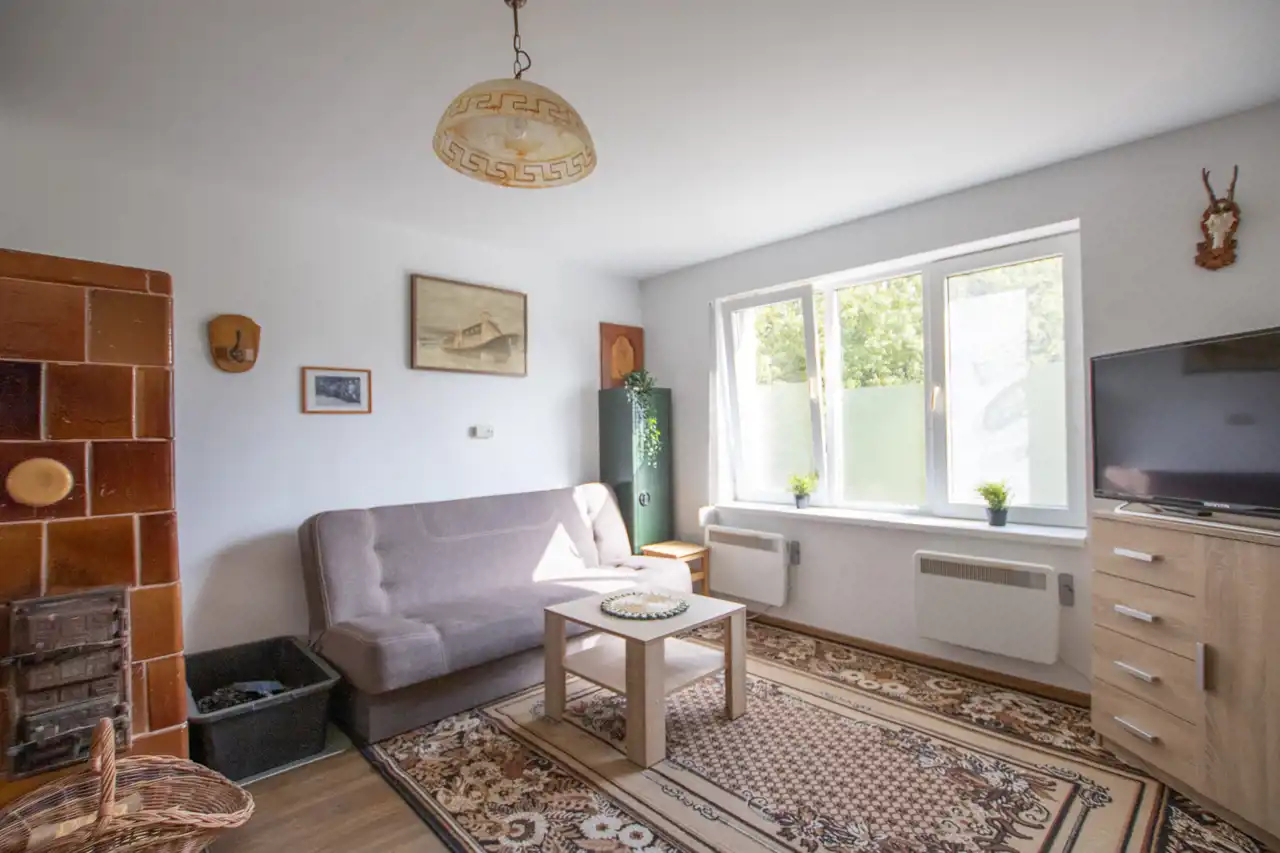 Mieszkanie znajduje się na parterze i jest podzielona na dwa pokoje a w jednym z nich wydzielony została aneks kuchenny. Przed kilkoma laty został przeprowadzony generalny remont, wykonane zostało również ocieplenie ścian, przez co lokal jest ciepły i przytulny. Okna plastikowe, dodatkowo zabezpieczone są roletami antywłamaniowymi. Dotychczasowy właściciel z mieszkania korzystał incydentalnie i mieszkanie służyło jako baza wypadowa by rozkoszować się okoliczną przyrodą. Do mieszkania przynależą praktyczne dodatki. Ogród bezpośrednio pod oknami mieszkania, pomieszczenie gospodarcze w odległości najwyższej 20 m, garaż oraz piwnica są niezwykle ciekawymi atutami które podwyższają atrakcyjność oferty.