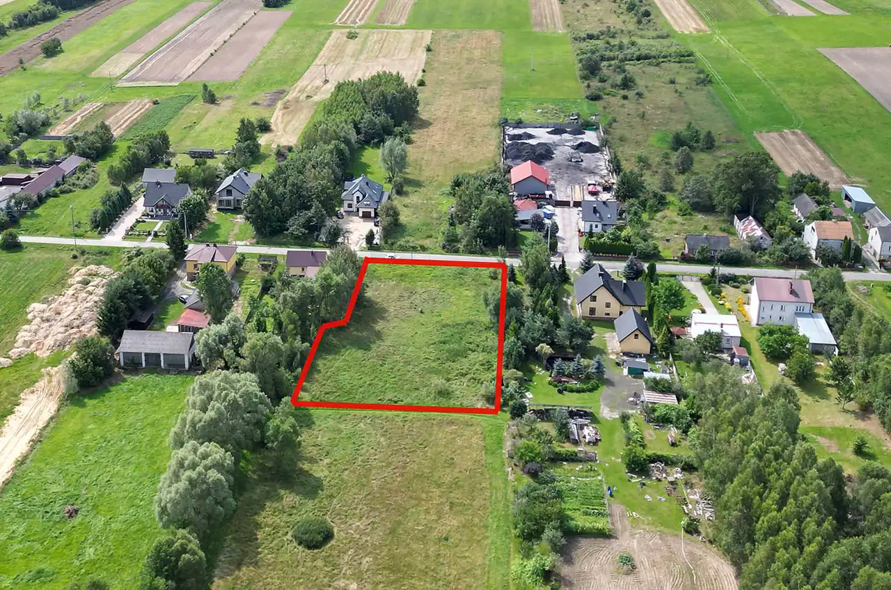 For sale: Plot of land with an area of 3088 sqm located in the village of Lisie Jamy, in the municipality of Mniów. The plot is undeveloped, flat, with a shape close to a rectangle, approximately measuring 40 x 68 x 47 x 24 x 13 x 34 [m]. The frontage width is 40 m. Access to the property is via a municipal asphalt road.