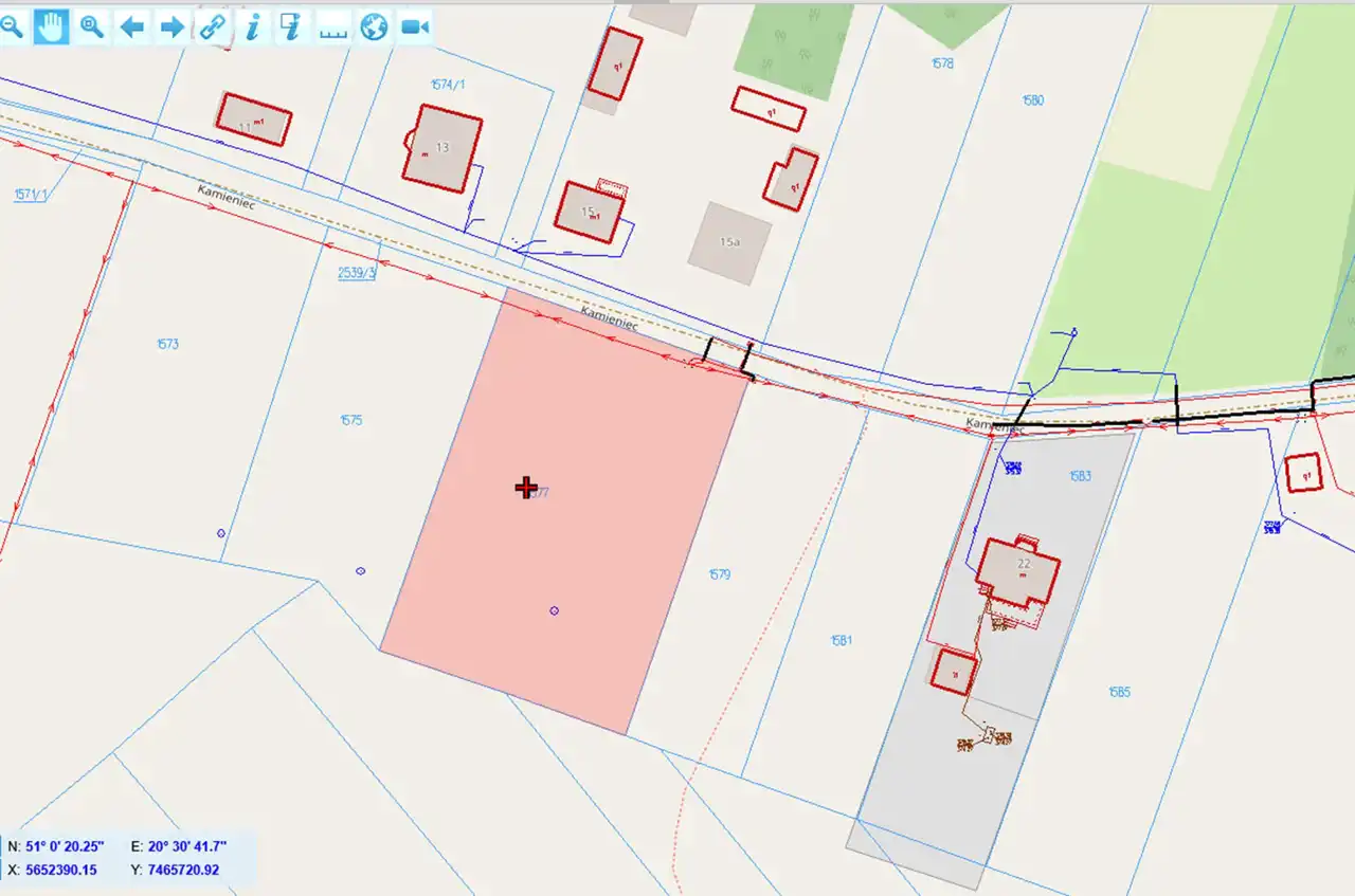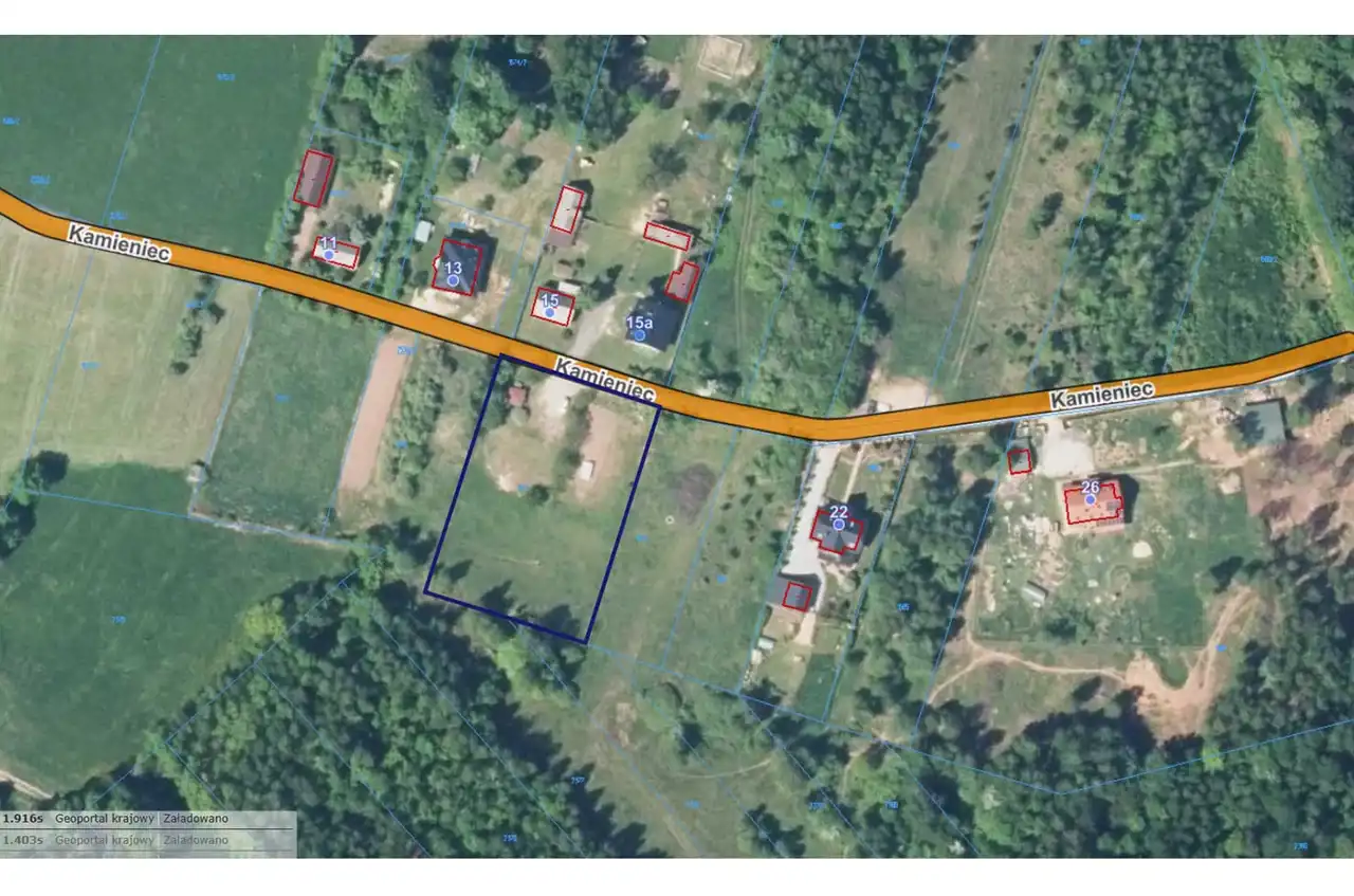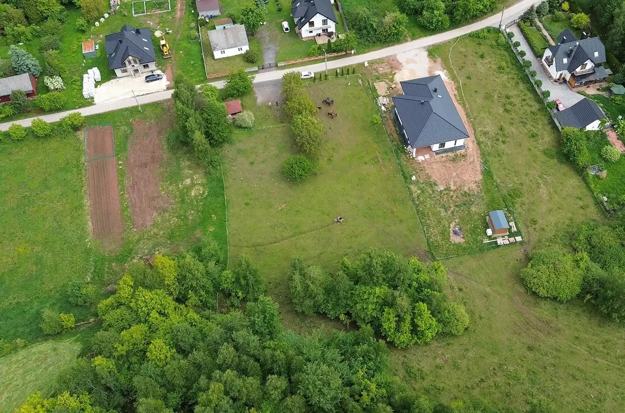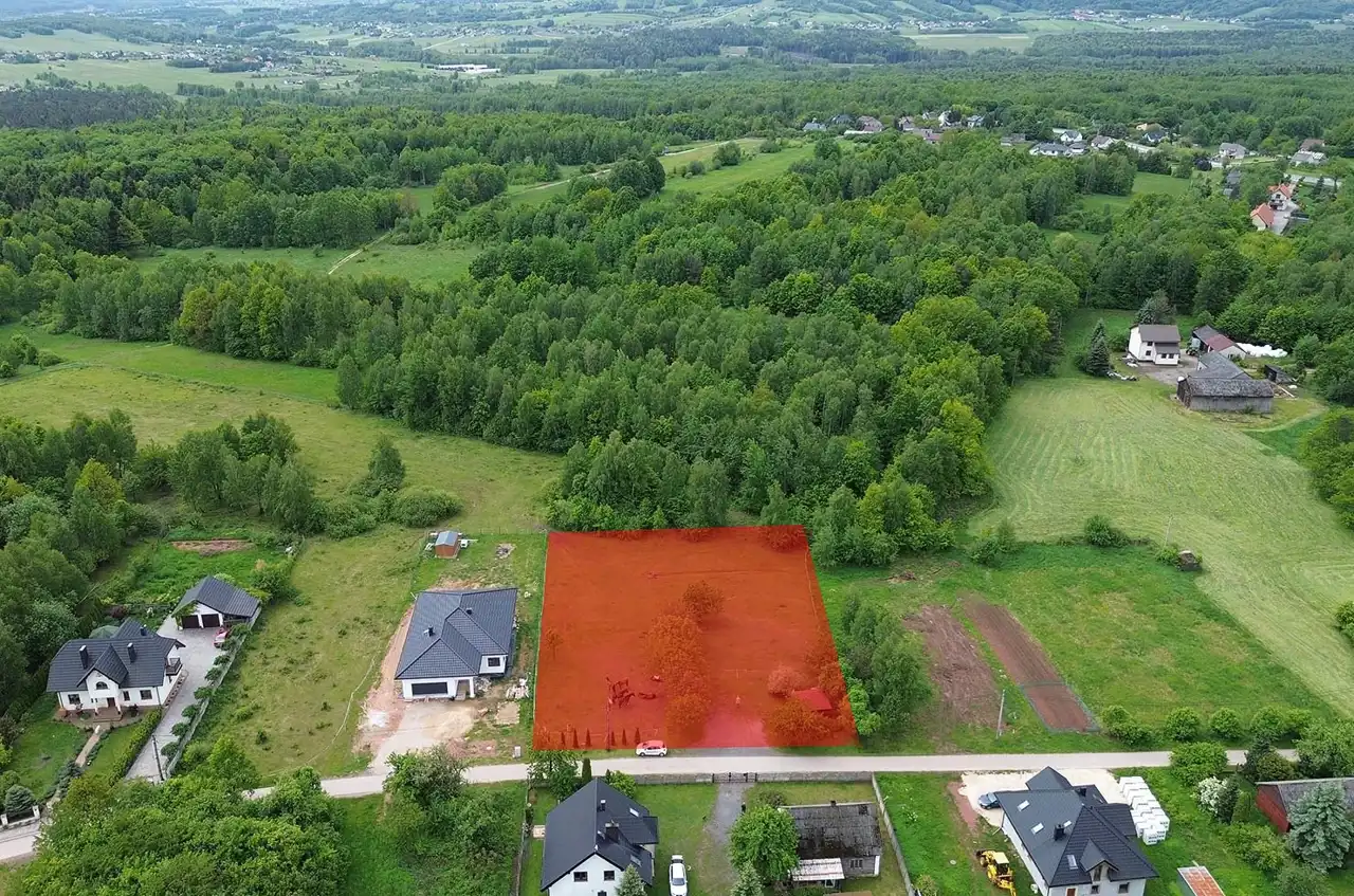 For sale: attractive plot of land with an area of 3029 m², located in the village of Mniów, Mniów commune. The plot is rectangular in shape, with a wide frontage (approx. 45 m). Situated in the first building line, directly by a municipal asphalt road. The land is undeveloped and unfenced. The surrounding area features single-family housing, greenery, peace, and quiet. Convenient access – 25 minutes from Kielce (19 km).