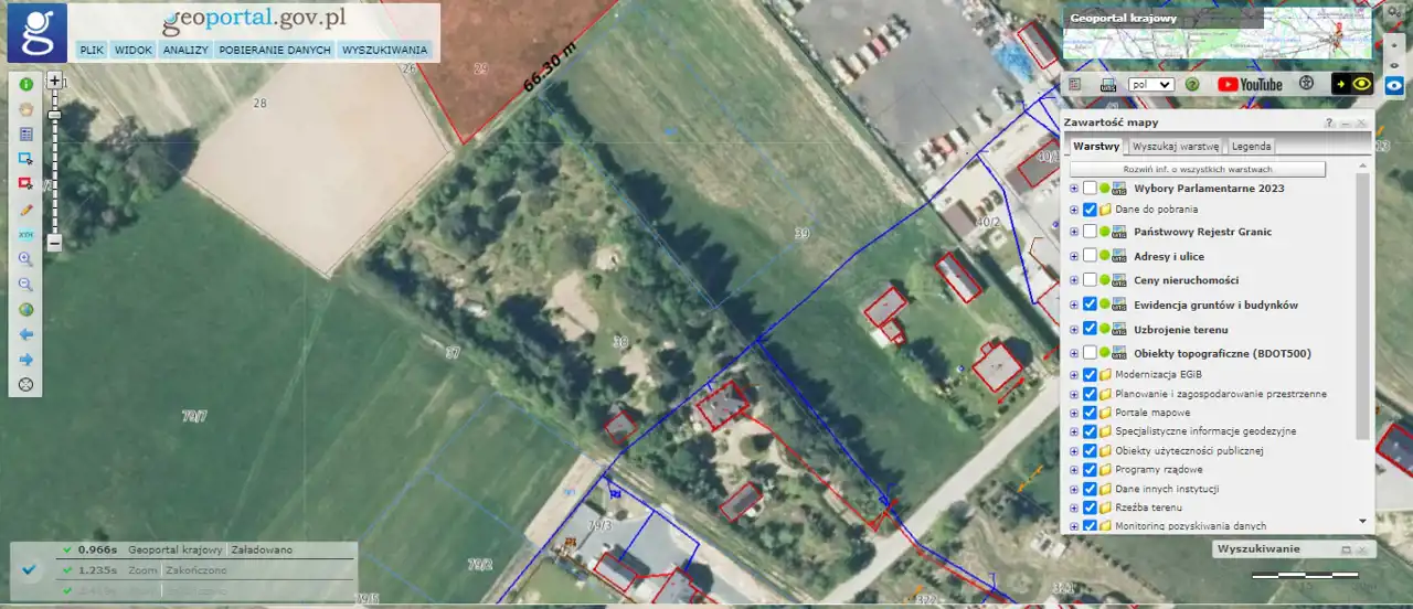Wymiary działki około: 66 (szer. od frontu) x 345 x 64x 342 [m]