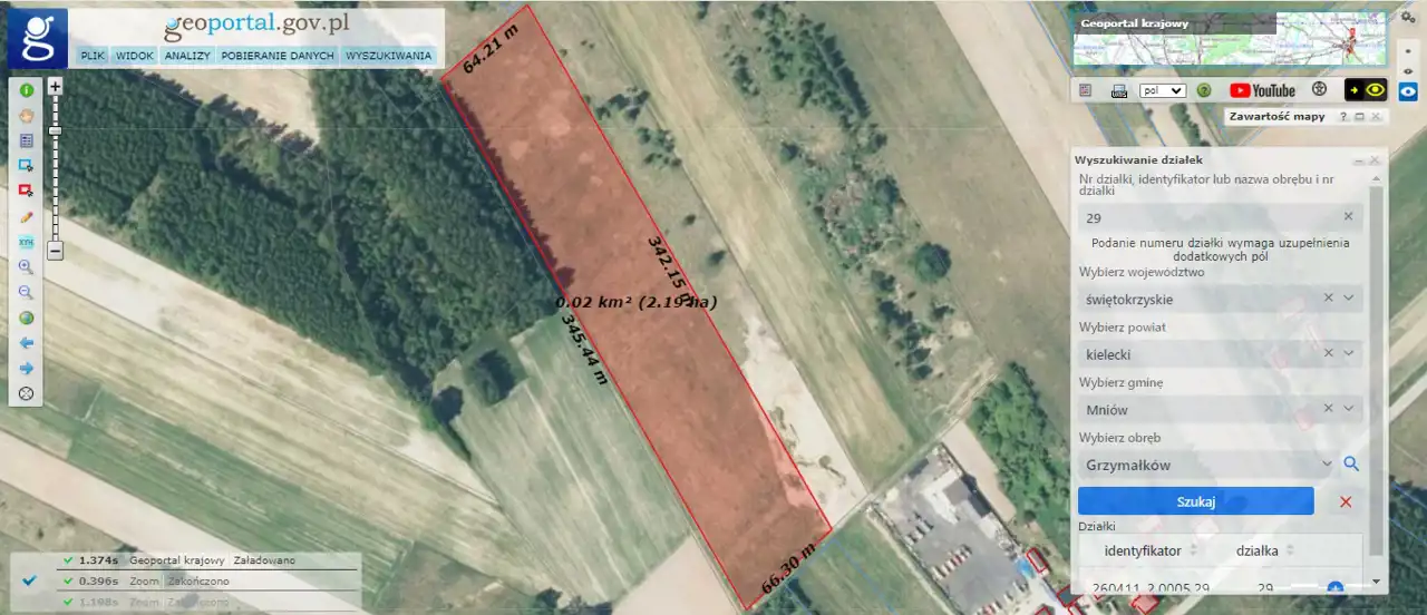 Na sprzedaż działka o pow. 21 600 m2, zlokalizowana w miejscowości Grzymałków, gm. Mniów.