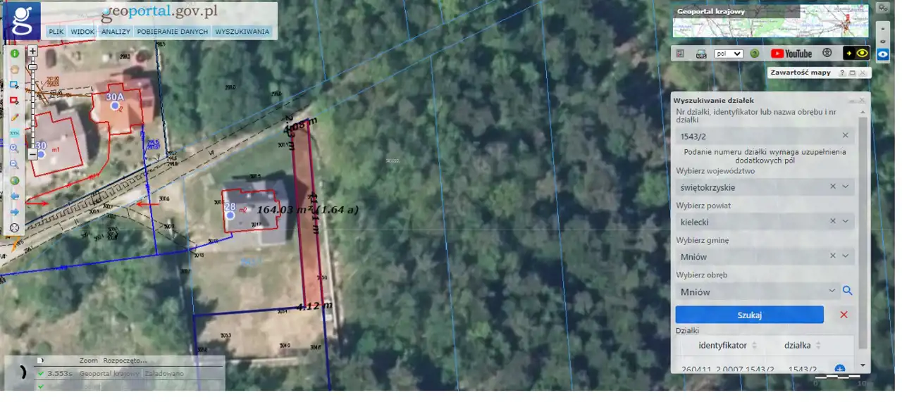 Wymiary drogi dojazdowej: 4 (szer. od frontu) x 41 [m]
