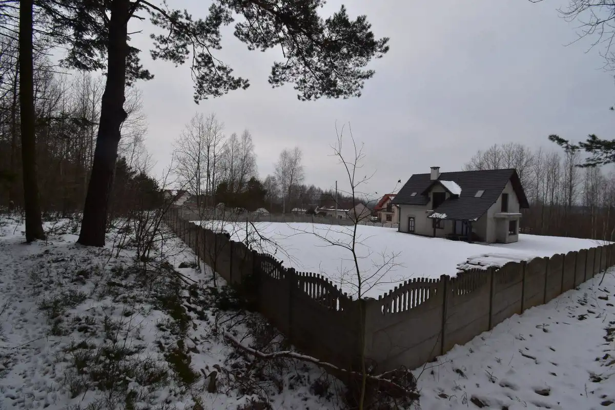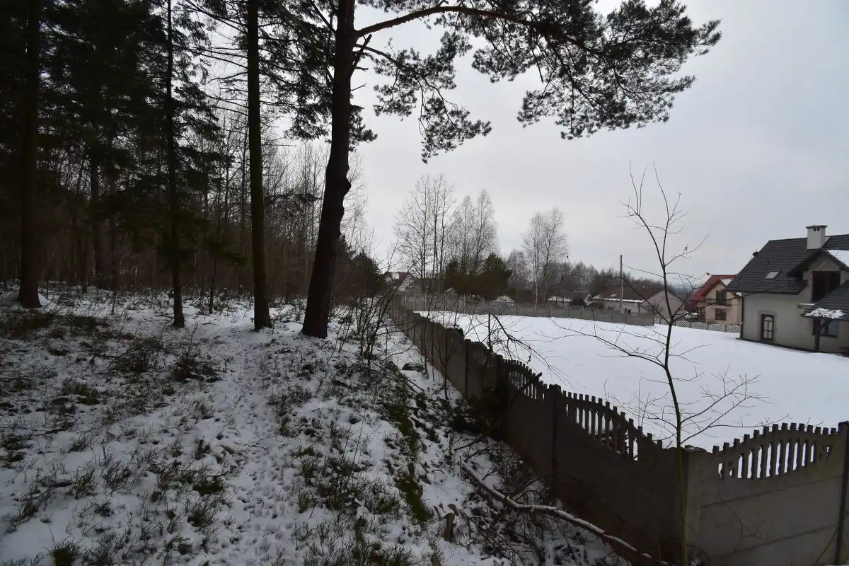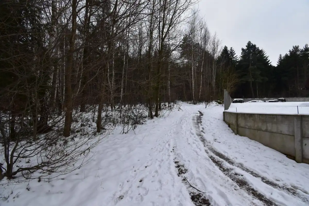 Dojazd do działki drogą gruntową utwardzoną + nieurządzoną drogą wewnętrzną o szer. 4 m (dł. 40 m). Działka lekko nachylona, w drugiej linii względem ulicy, nieogrodzona, porośnięta lasem, w kształcie trapezu.