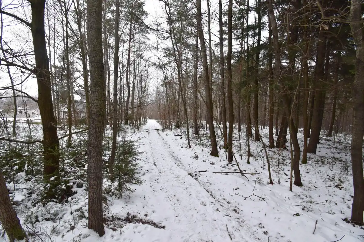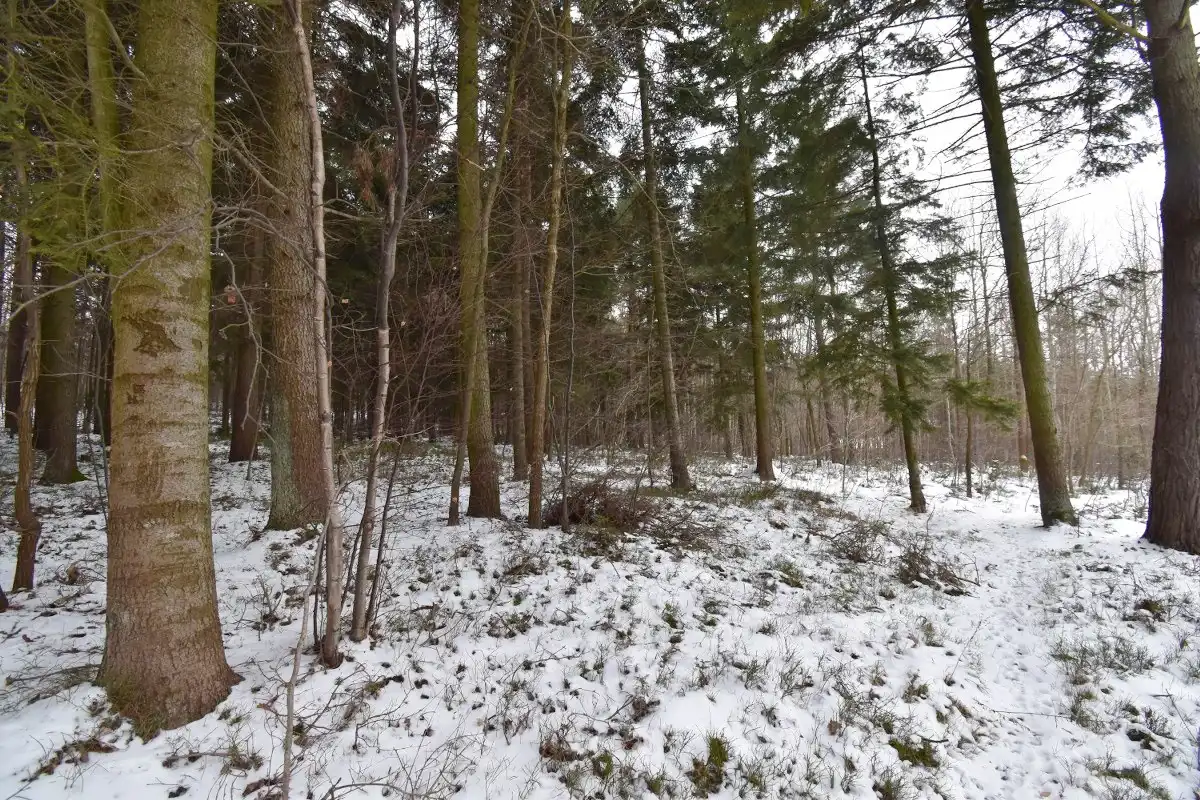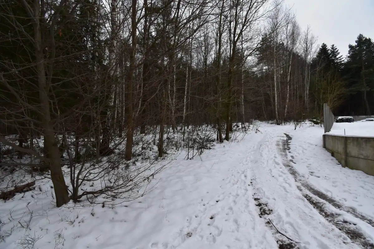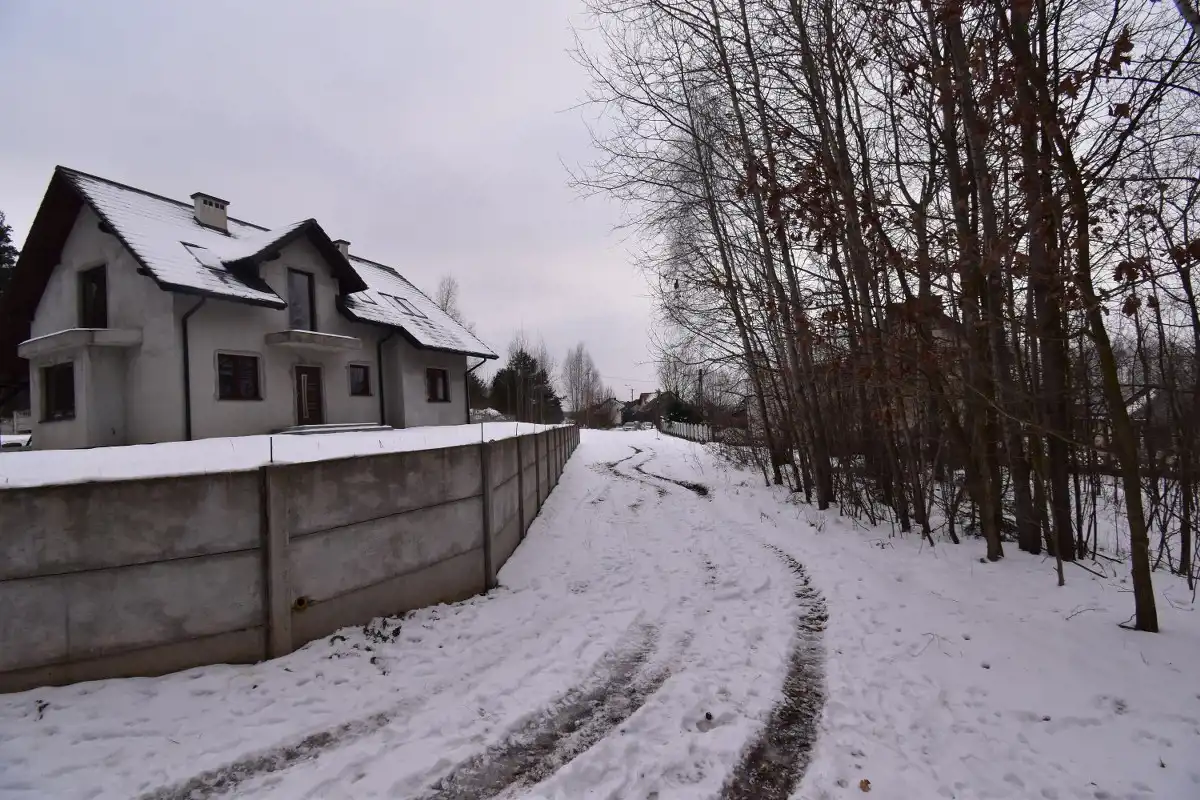 Dojazd do działki drogą gruntową utwardzoną + nieurządzoną drogą wewnętrzną o szer. 4 m (dł. 40 m). Działka lekko nachylona, w drugiej linii względem ulicy, nieogrodzona, porośnięta lasem, w kształcie trapezu.