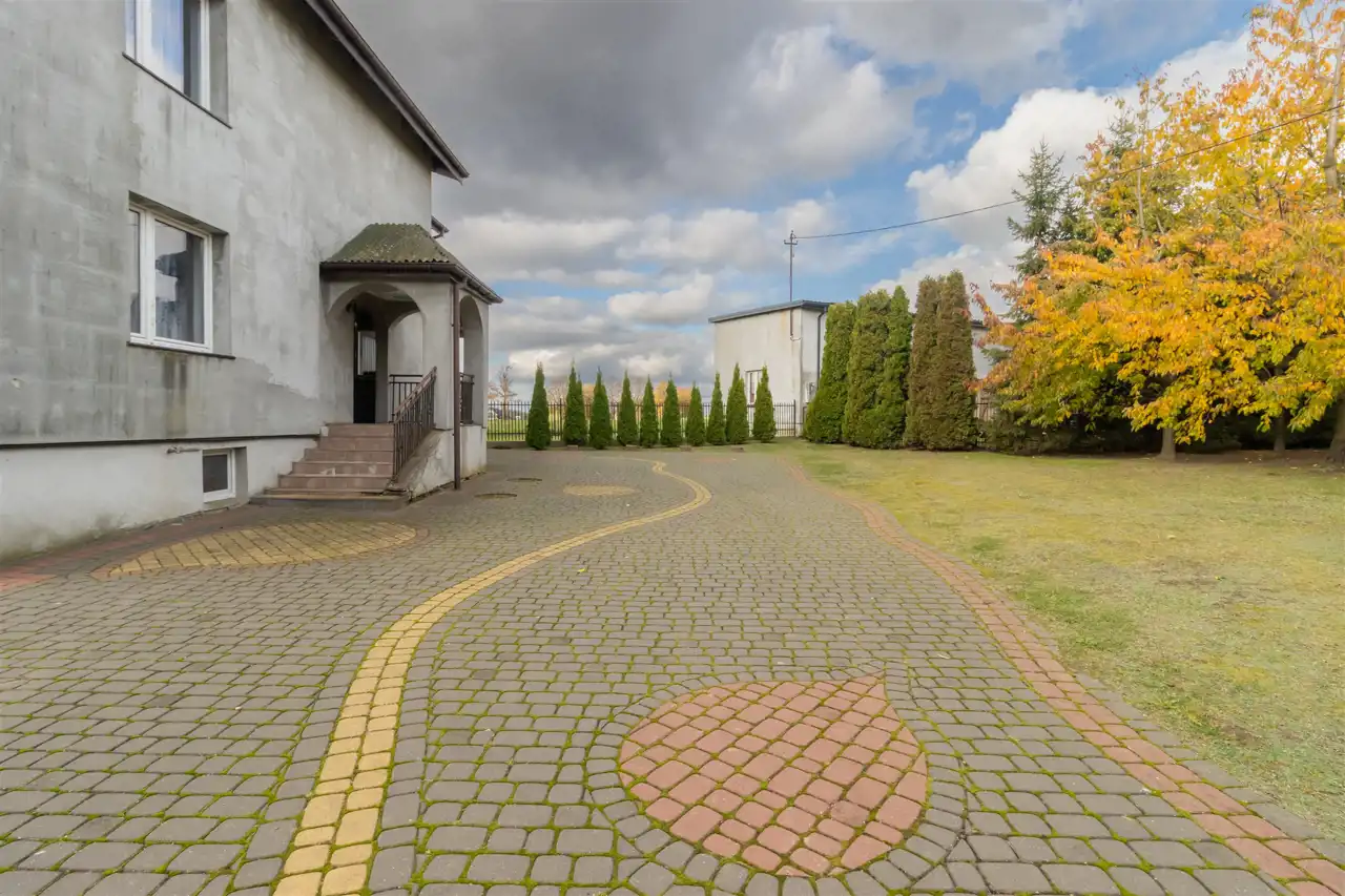 - Wybrukowany podjazd łączy trwałość i estetykę, gwarantując wygodny, odporny na warunki pogodowe wjazd do domu.