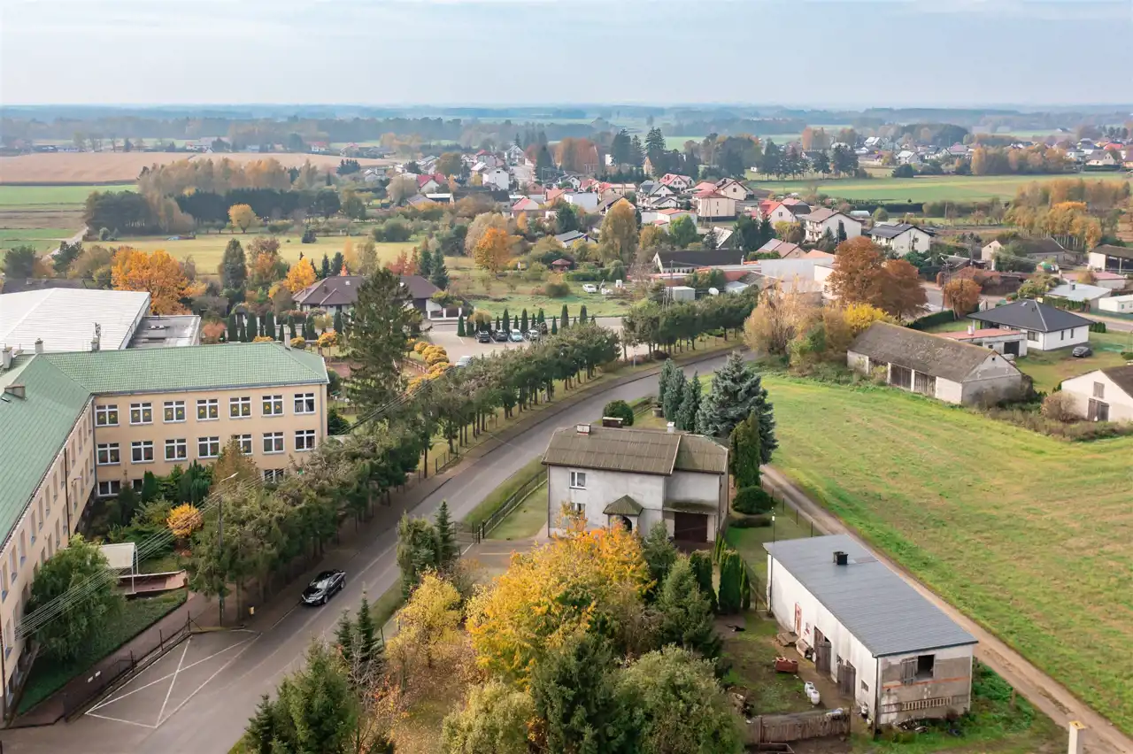 Przykładowe odległości: najbliższy market 300 m. Szkoła Podstawowa 100 m. Restauracja 1 km. Przychodnia 5 km. Urząd Gminy 5 km. Weterynarz 5 km. Poczta Polska 4,4 km. Automat DPD, DHL 5 km.