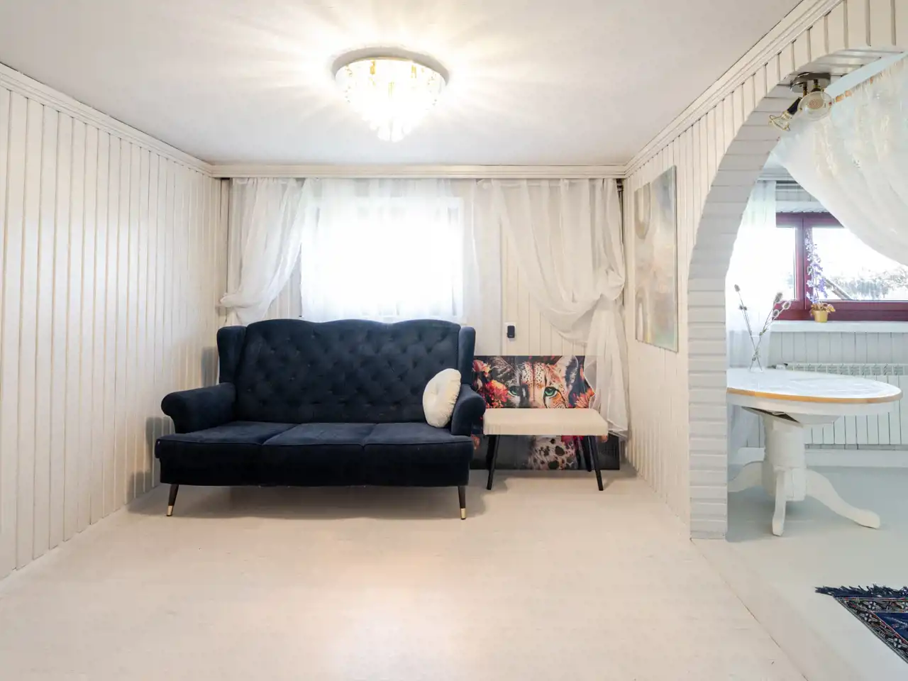 Dom jest do odświeżenia, co daje możliwość urządzenia wnętrz według własnego stylu i potrzeb.