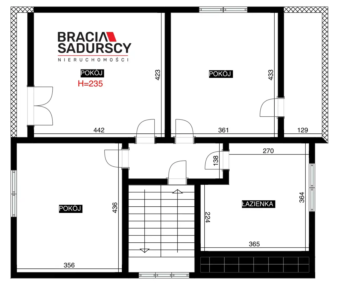 1 piętro - powierzchnia użytkowa łącznie ok. 75 m2.