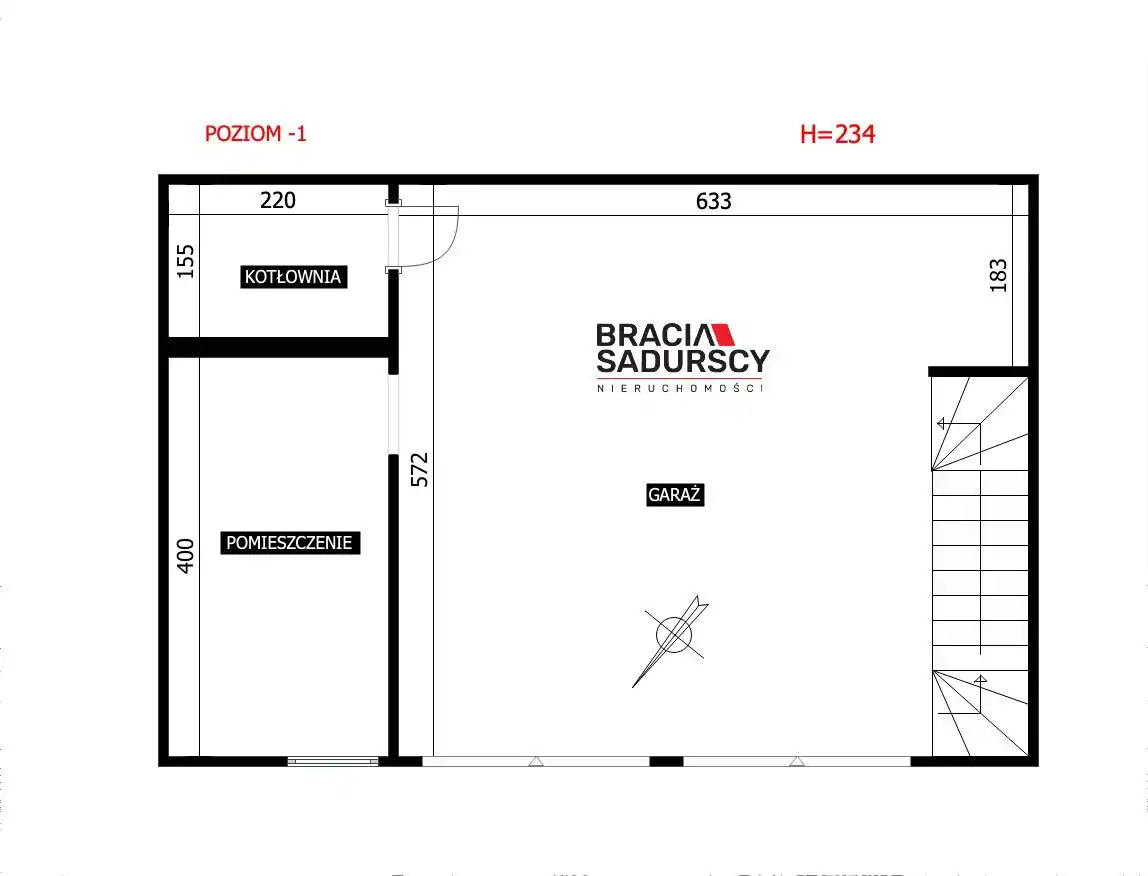 Nieruchomość ma powierzchnię 168 m² i składa się z trzech kondygnacji: