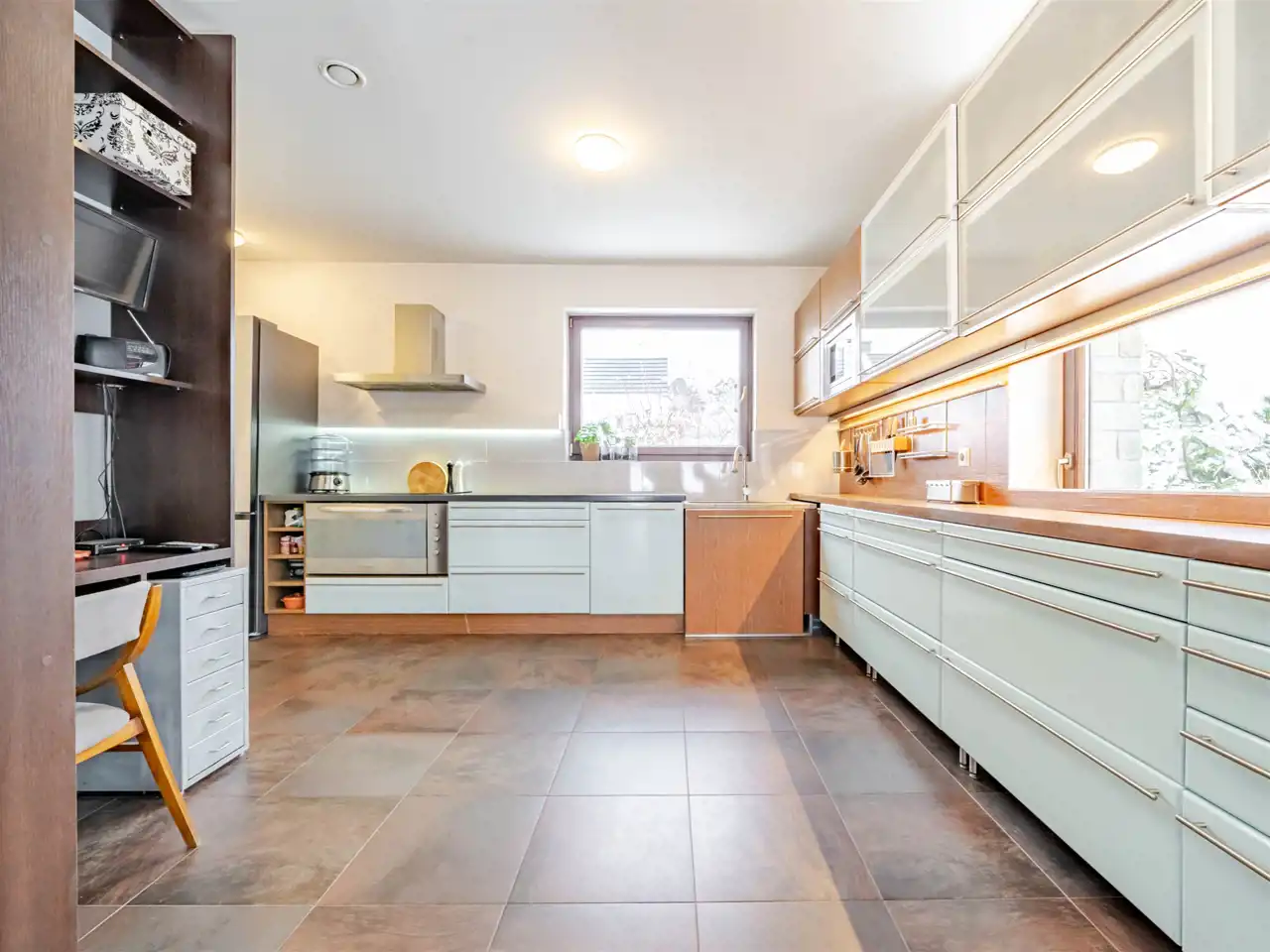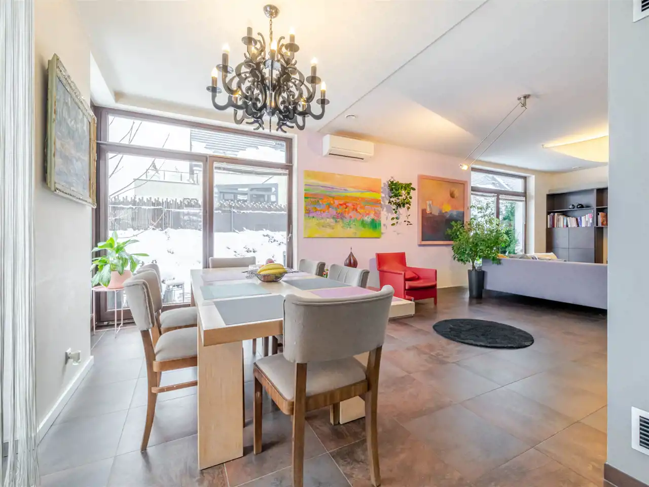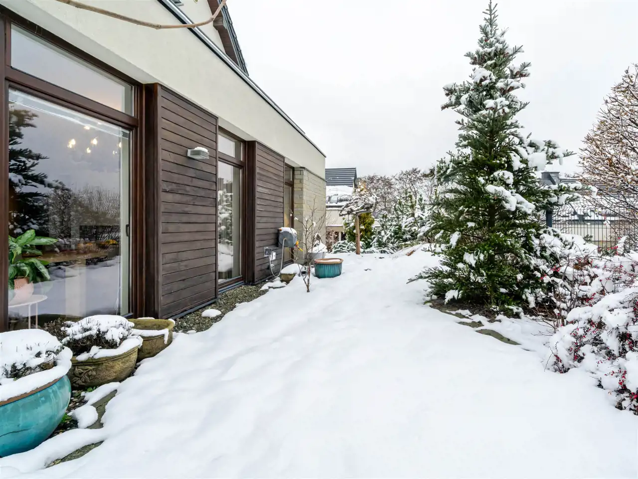 Dom wykończony został w wysokim standardzie, z wykorzystaniem naturalnych materiałów i dbałością o każdy detal. Przestronne okna zapewniają doskonałe doświetlenie wnętrz, a widok na otaczającą zieleń nadaje nieruchomości wyjątkowy charakter. Działka o powierzchni niespełna 4 arów mieści starannie zaprojektowany i zadbany ogród – idealne miejsce do wypoczynku.