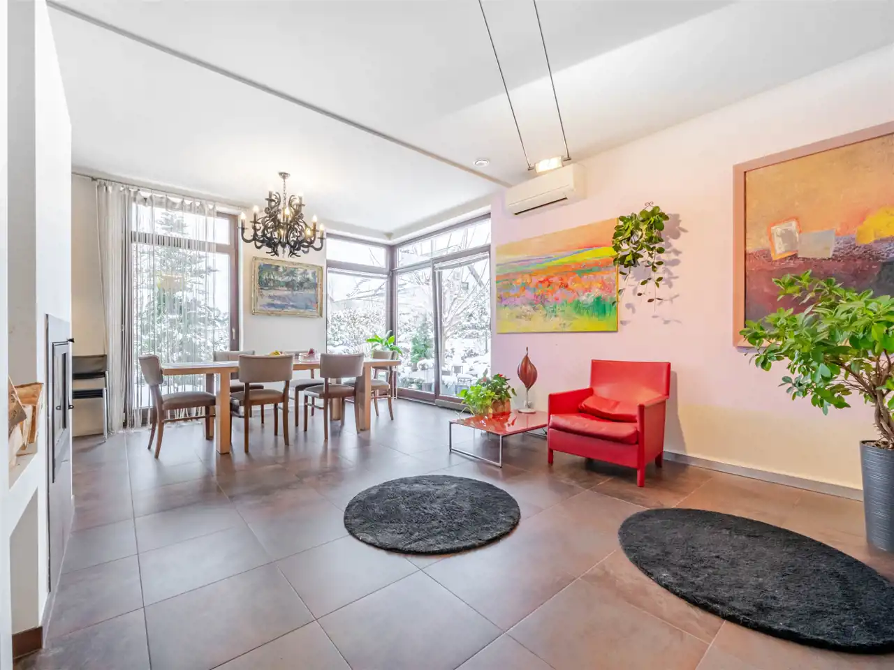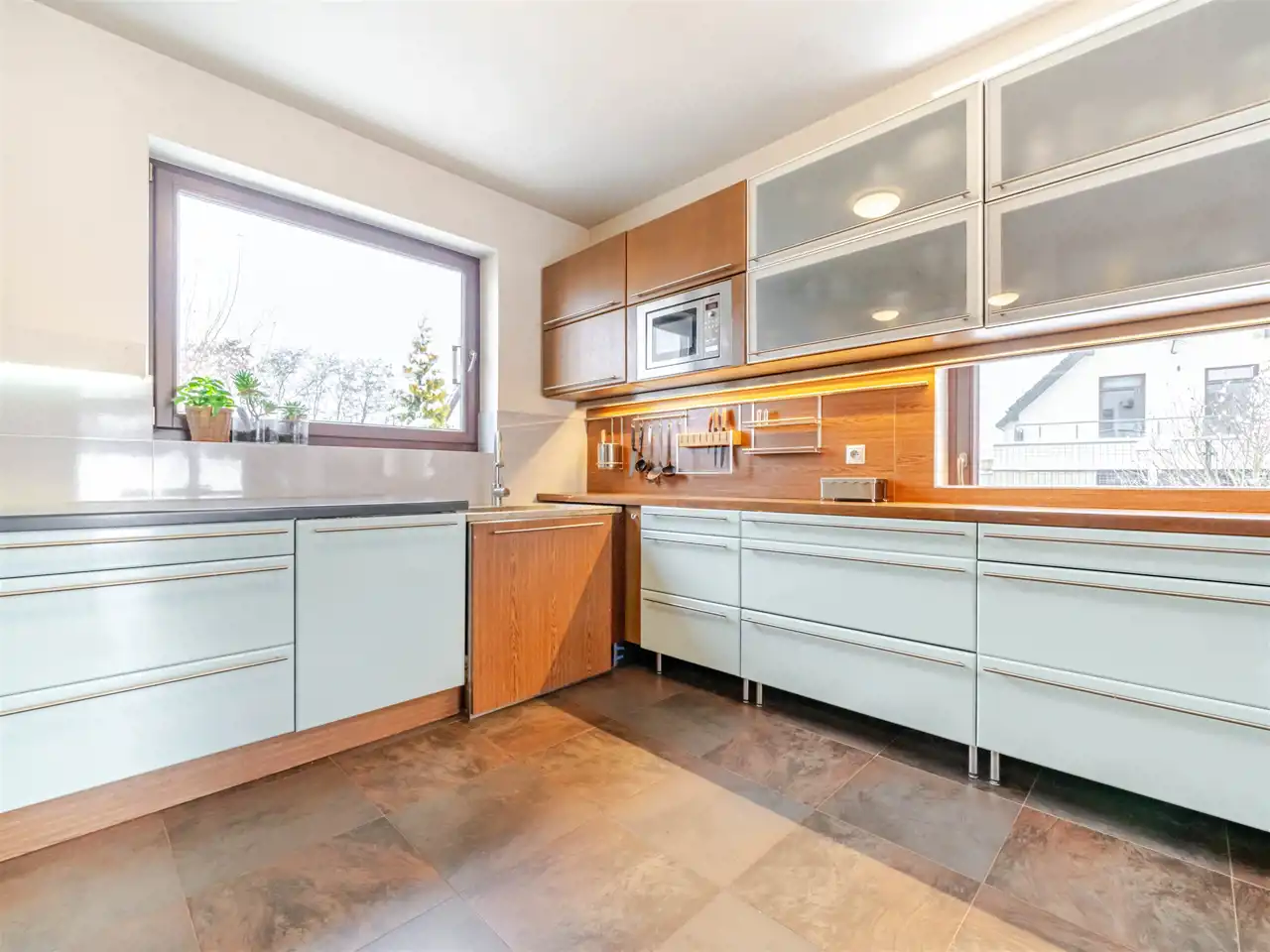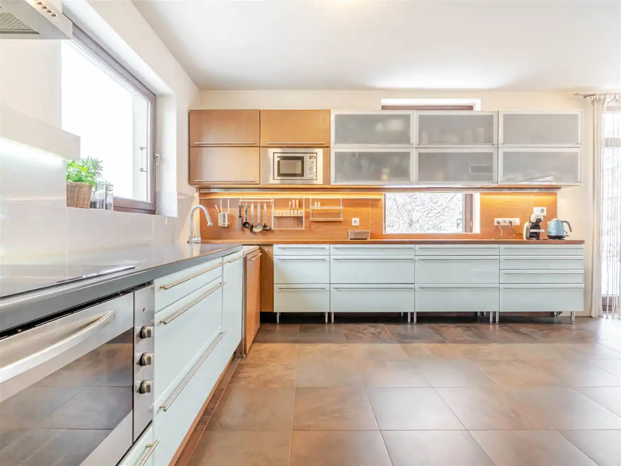 Dom wykończony został w wysokim standardzie, z wykorzystaniem naturalnych materiałów i dbałością o każdy detal. Przestronne okna zapewniają doskonałe doświetlenie wnętrz, a widok na otaczającą zieleń nadaje nieruchomości wyjątkowy charakter. Działka o powierzchni niespełna 4 arów mieści starannie zaprojektowany i zadbany ogród – idealne miejsce do wypoczynku.