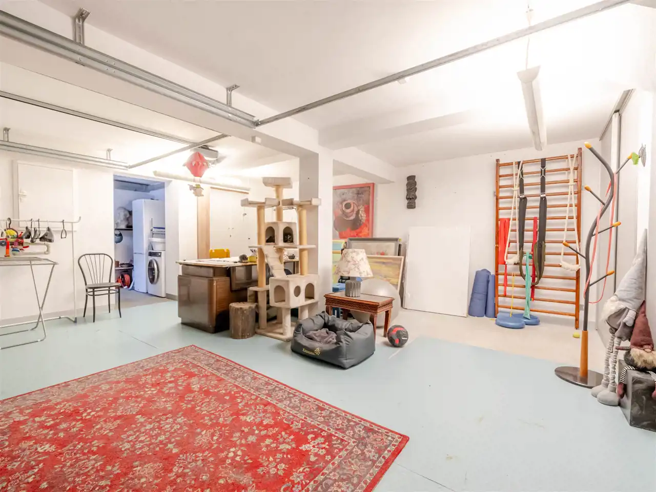 podwójny garaż zaadaptowany na pracownię oraz strefę fitness/relaksu,