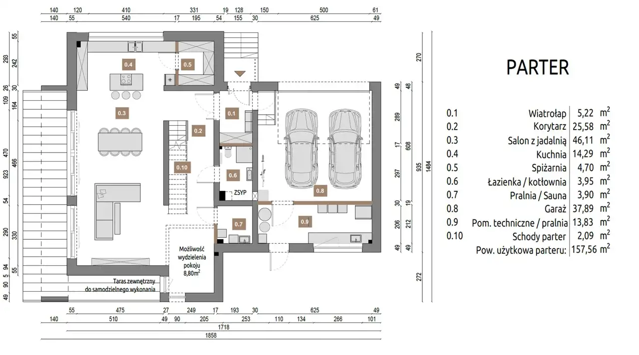Powierzchnia użytkowa domu : 243,70 m2