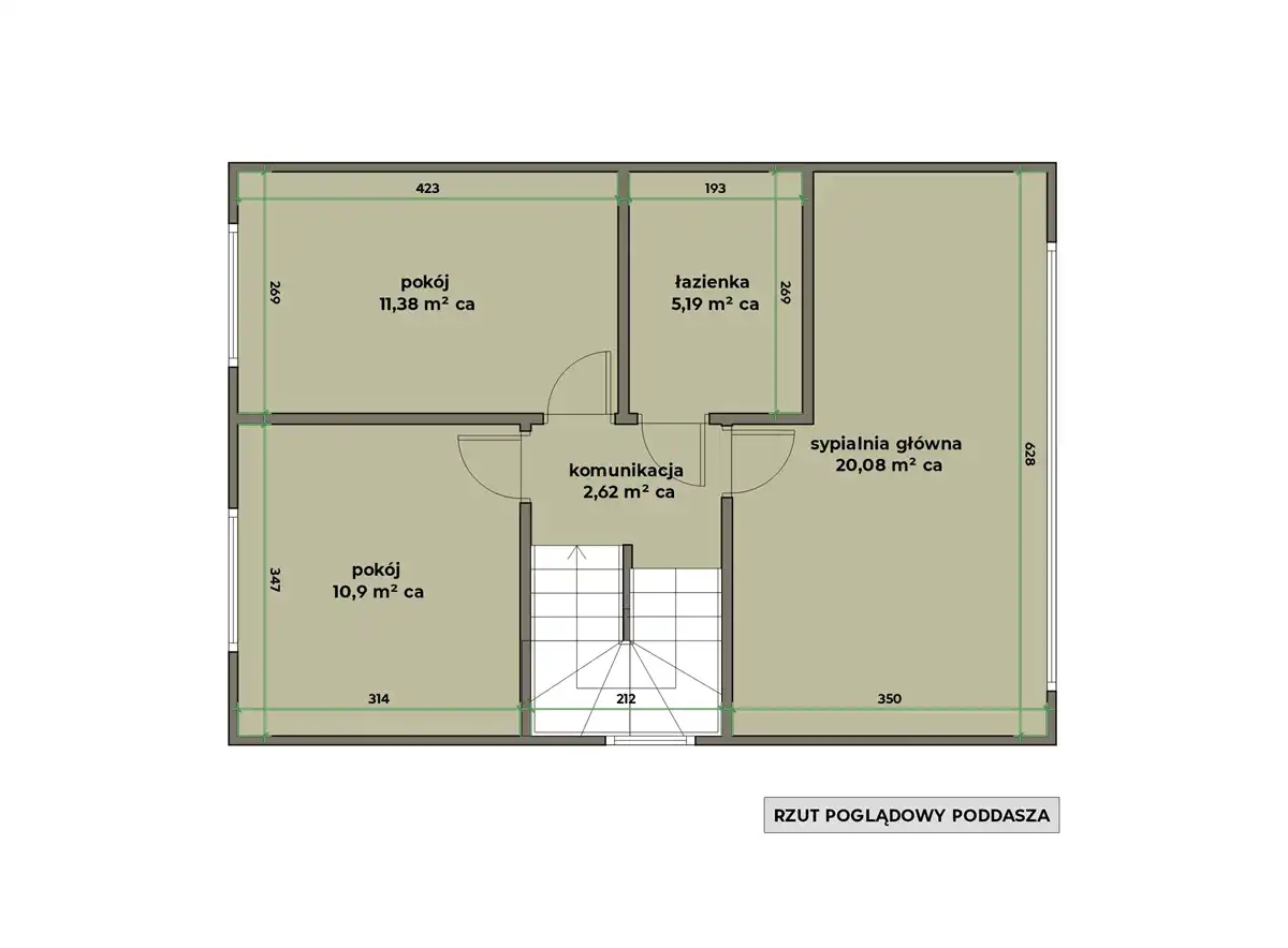 - Poddasze: komunikacja, 3 sypialnie, łazienka