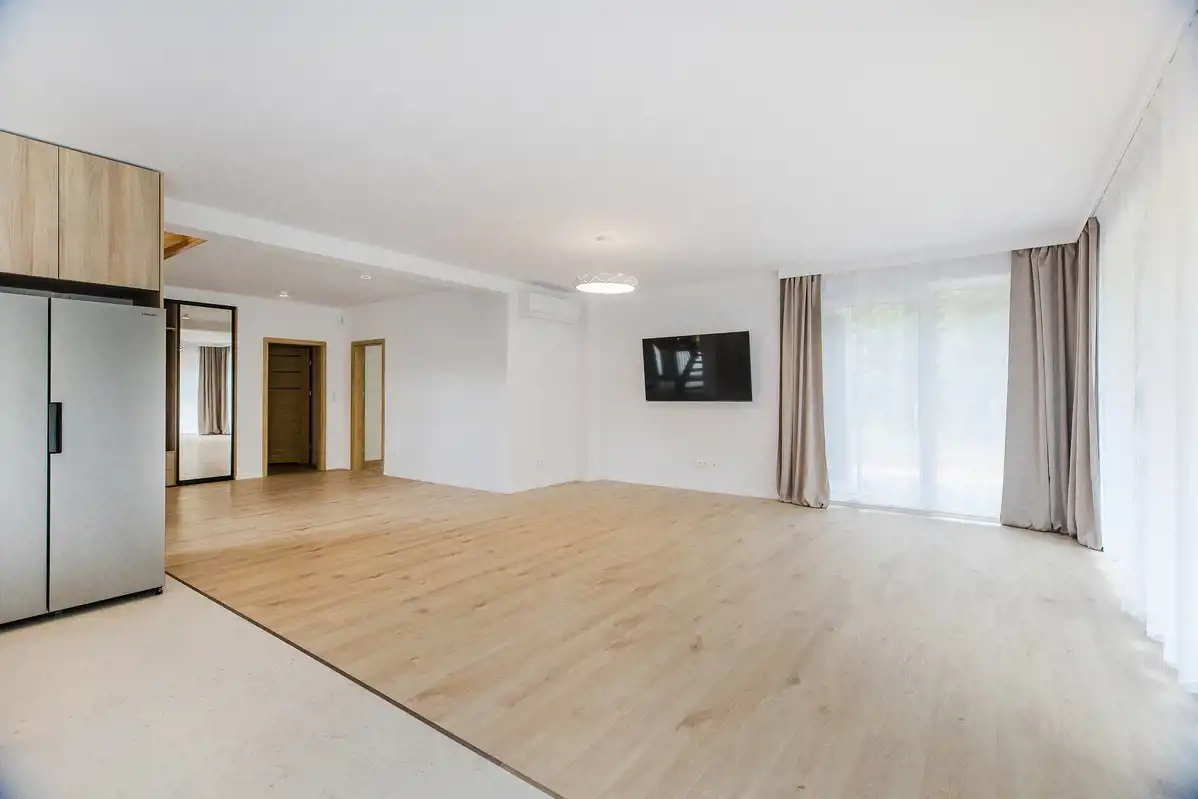 - salon z aneksem kuchennym (50 m2) wyjściem na taras