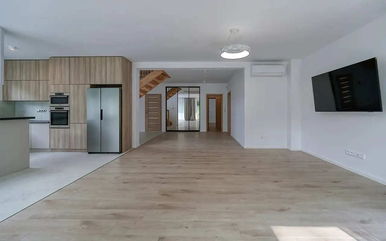 Duży, przestronny, z bardzo funkcjonalnym układem pomieszczeń, każda sypialnia ma własną łazienkę. Bardzo wysoki standard wykończenia. Wszystkie pokoje bardzo ładnie doświetlone, klimatyzacja, system alarmowy, ogrzewanie podłogowe, garaż 2 stanowiskowy, dodatkowe miejsce parkingowe na terenie posesji.