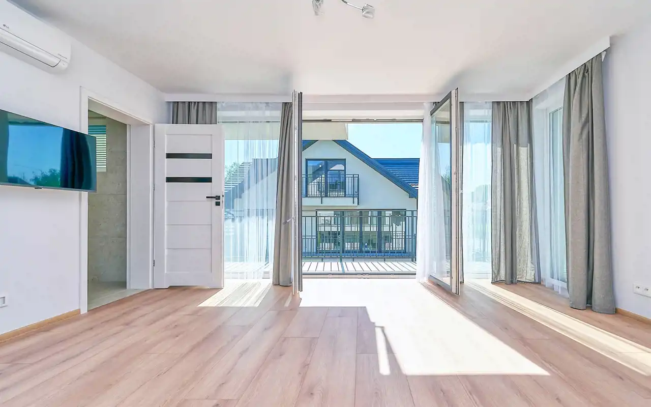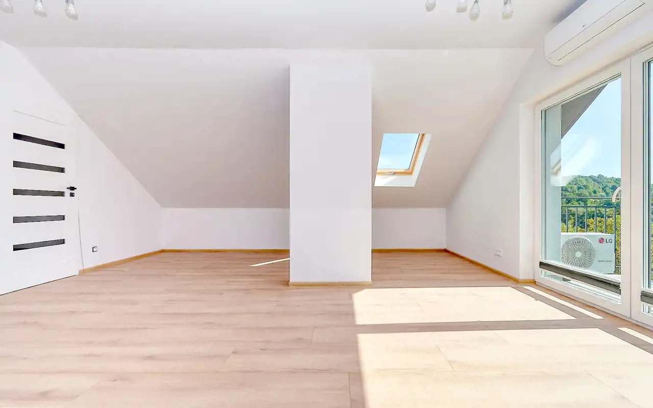 duża, otwarta przestrzeń (ok. 60 m²) z wydzielonymi dwiema strefami, balkonem i klimatyzacją – świetne miejsce na strefę rekreacyjną, kino domowe czy pokój hobby,