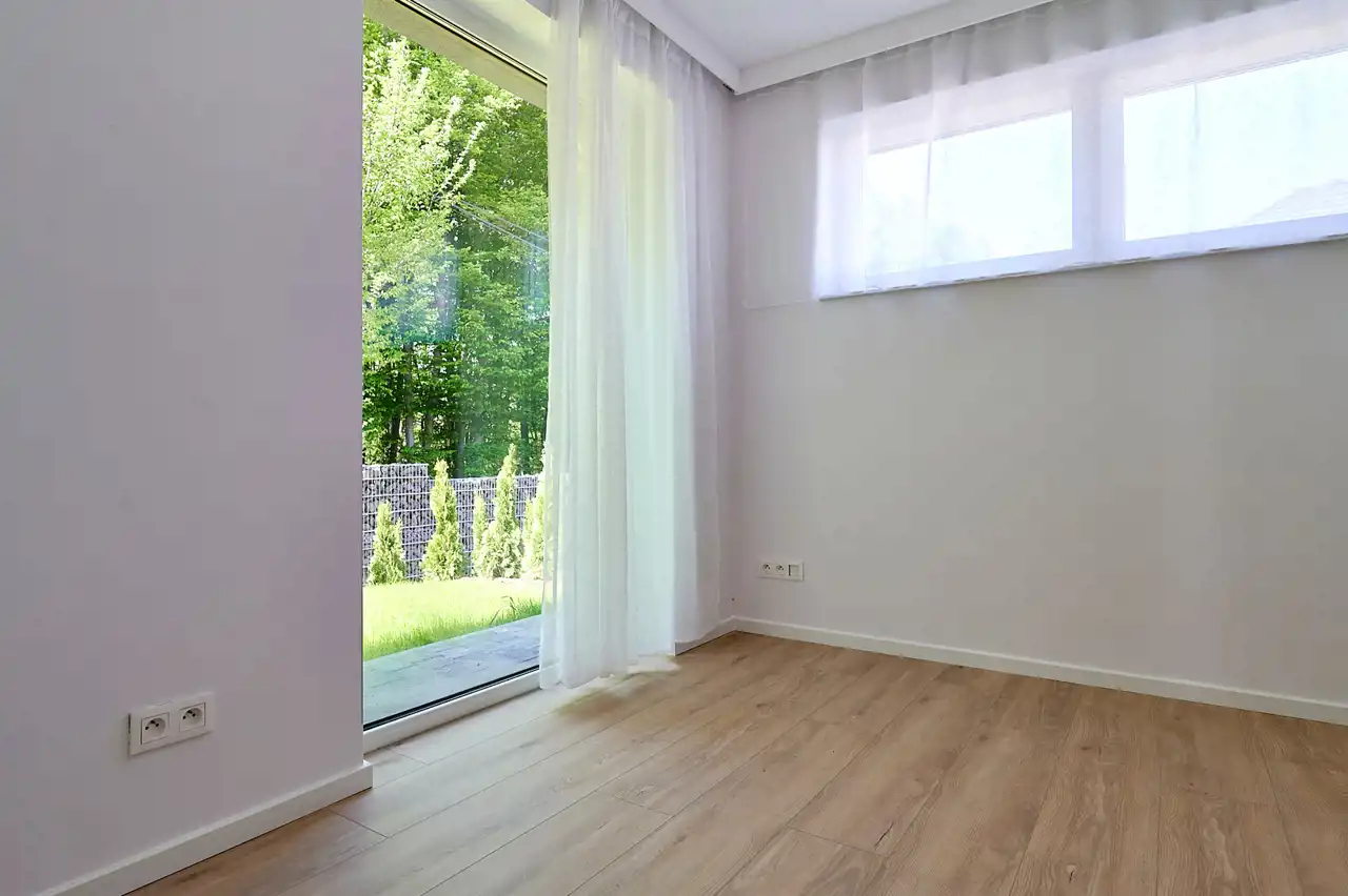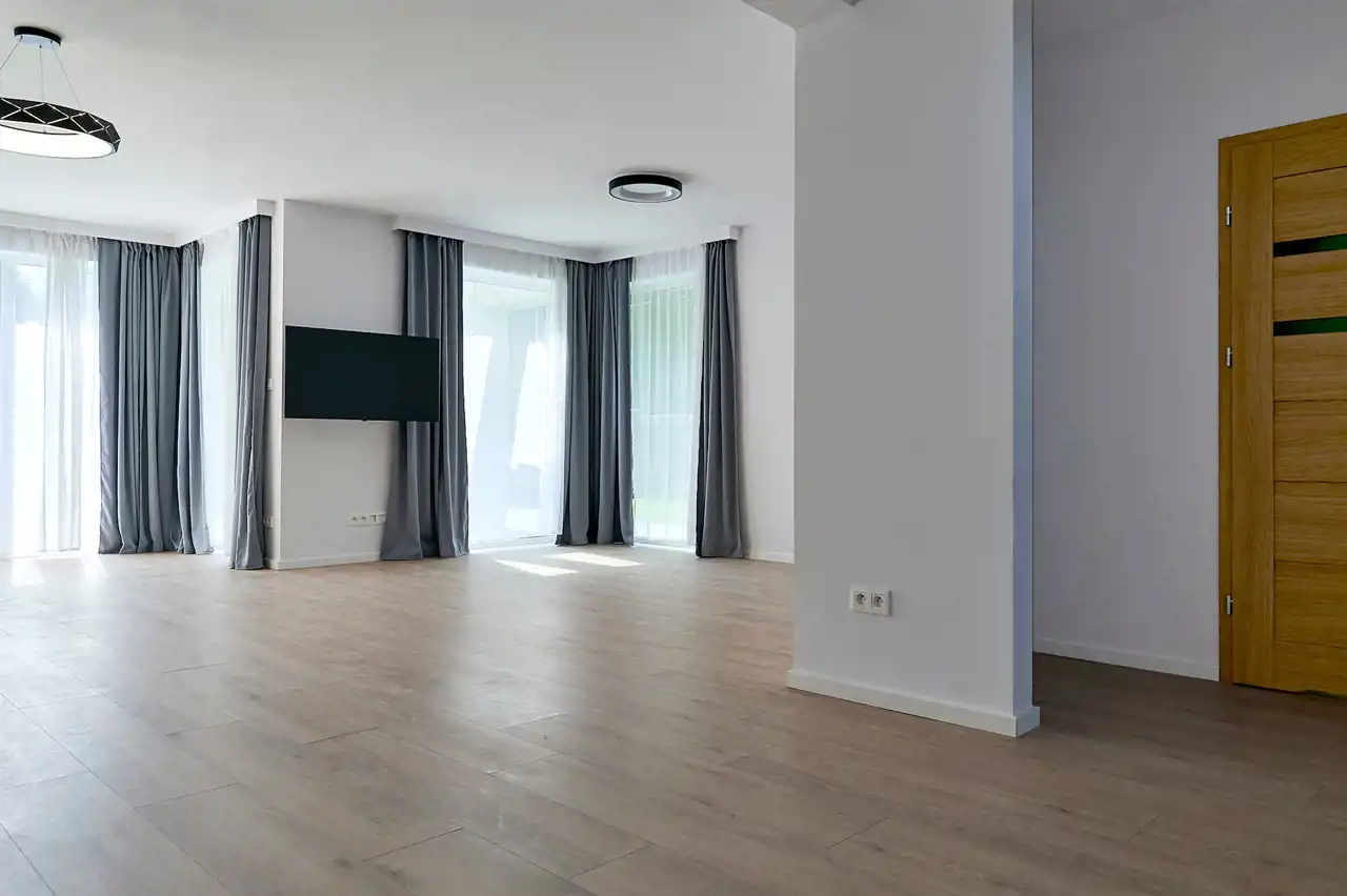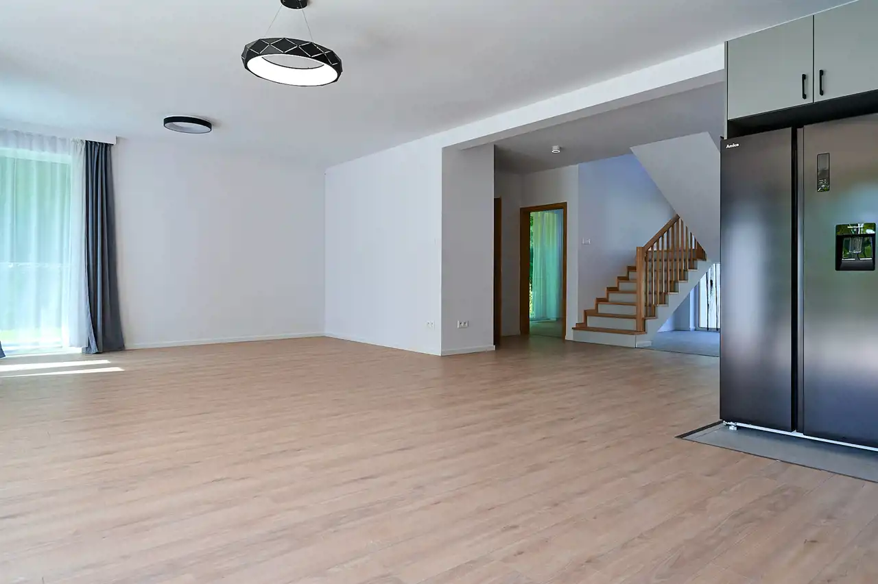 Duży, przestronny, z bardzo funkcjonalnym układem pomieszczeń. Bardzo wysoki standard wykończenia. Wszystkie pokoje bardzo ładnie doświetlone, klimatyzacja, system alarmowy, ogrzewanie podłogowe, garaż.