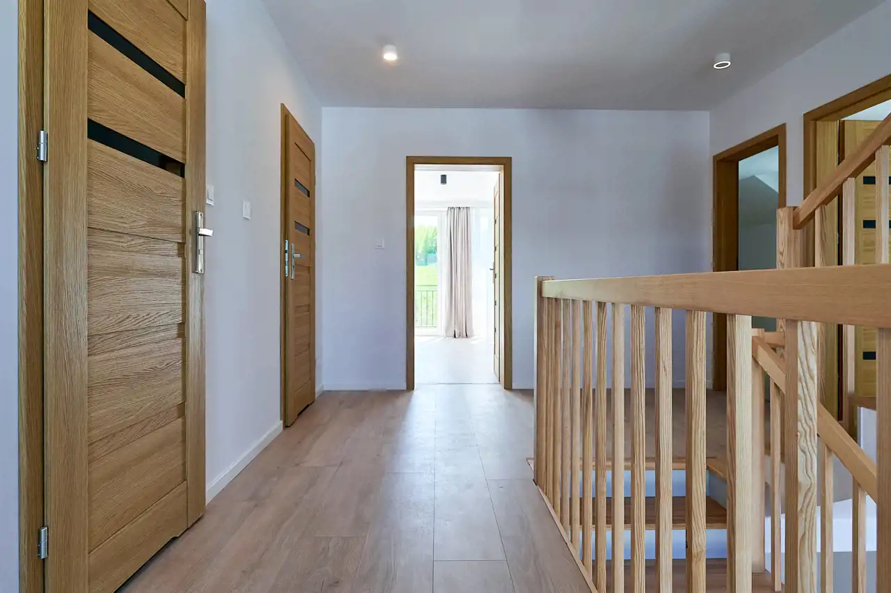 I piętro - 1 duża sypialnia z łazienką i garderobą, 2 sypialnie, łazienka oraz kotłownia z pralnią