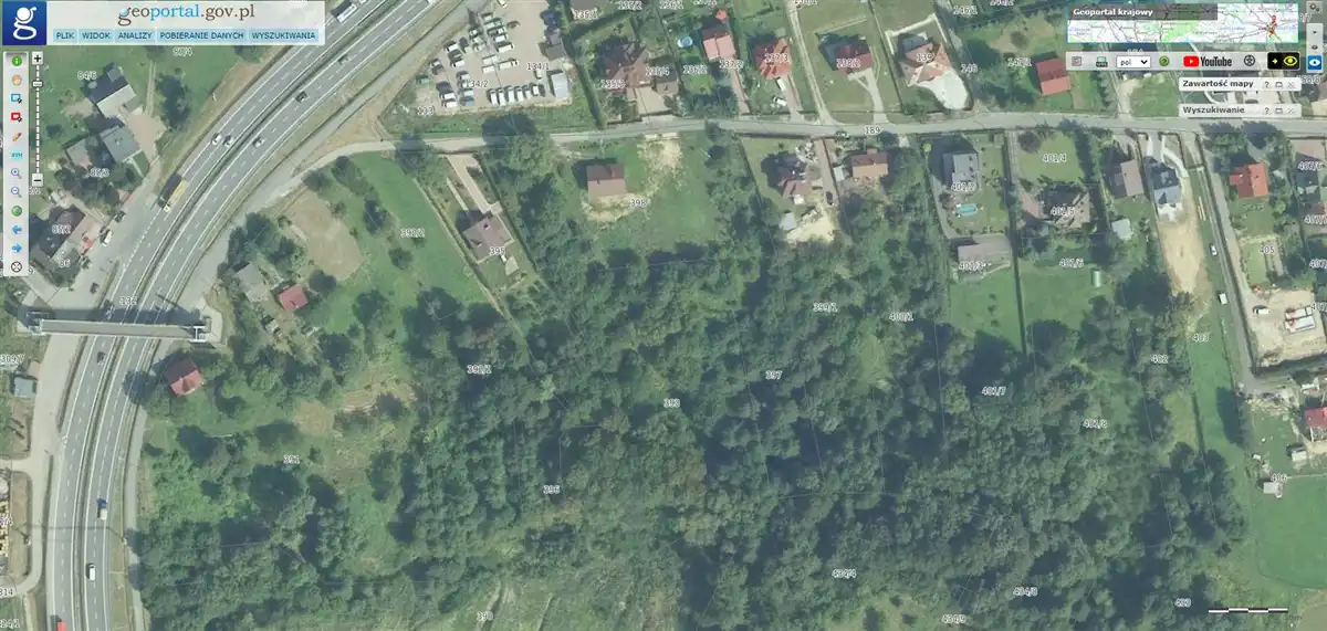 Działka jest nieco pochylona, położona w niedalekiej odległości od Zakopianki.