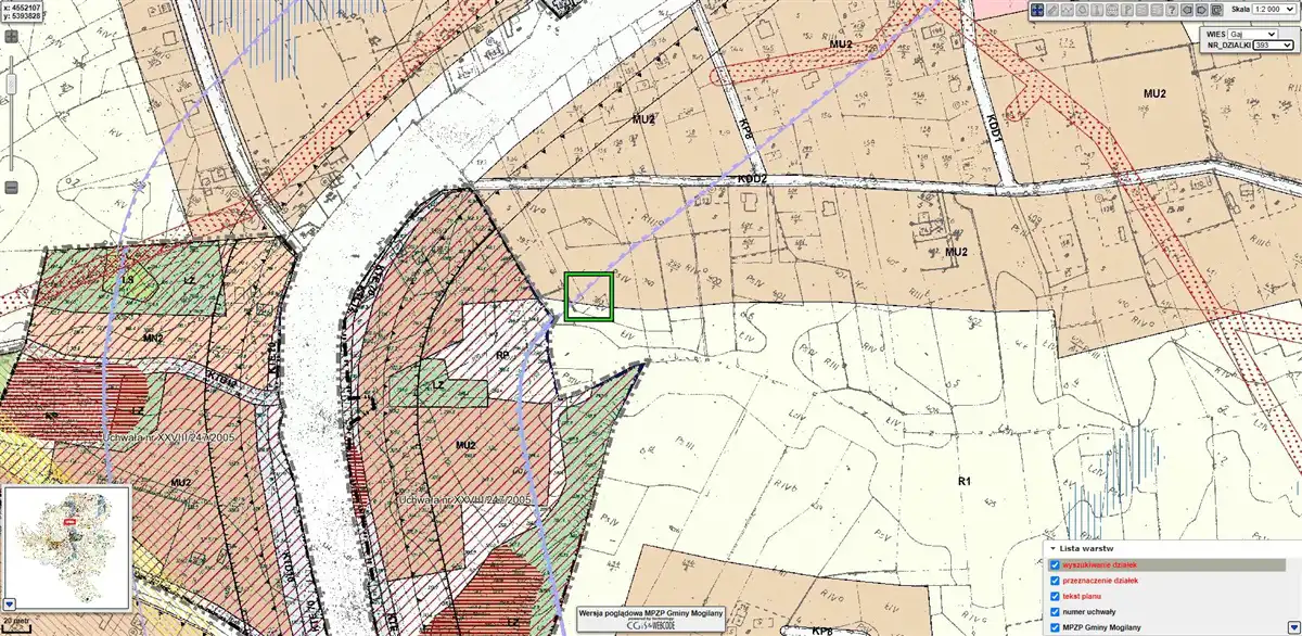 Ma status budowlano - rolnej. Z czego około 38a to część budowlana - symbol MU (ok. 27a w kształcie zbliżonym do kwadratu pod zabudowę, a ok. 11a pod drogę dojazdową z możliwością postawienia garaży, miejsc parkingowych itp. - szerokość od 15-22m). 30% to powierzchnia biologicznie czynna.
