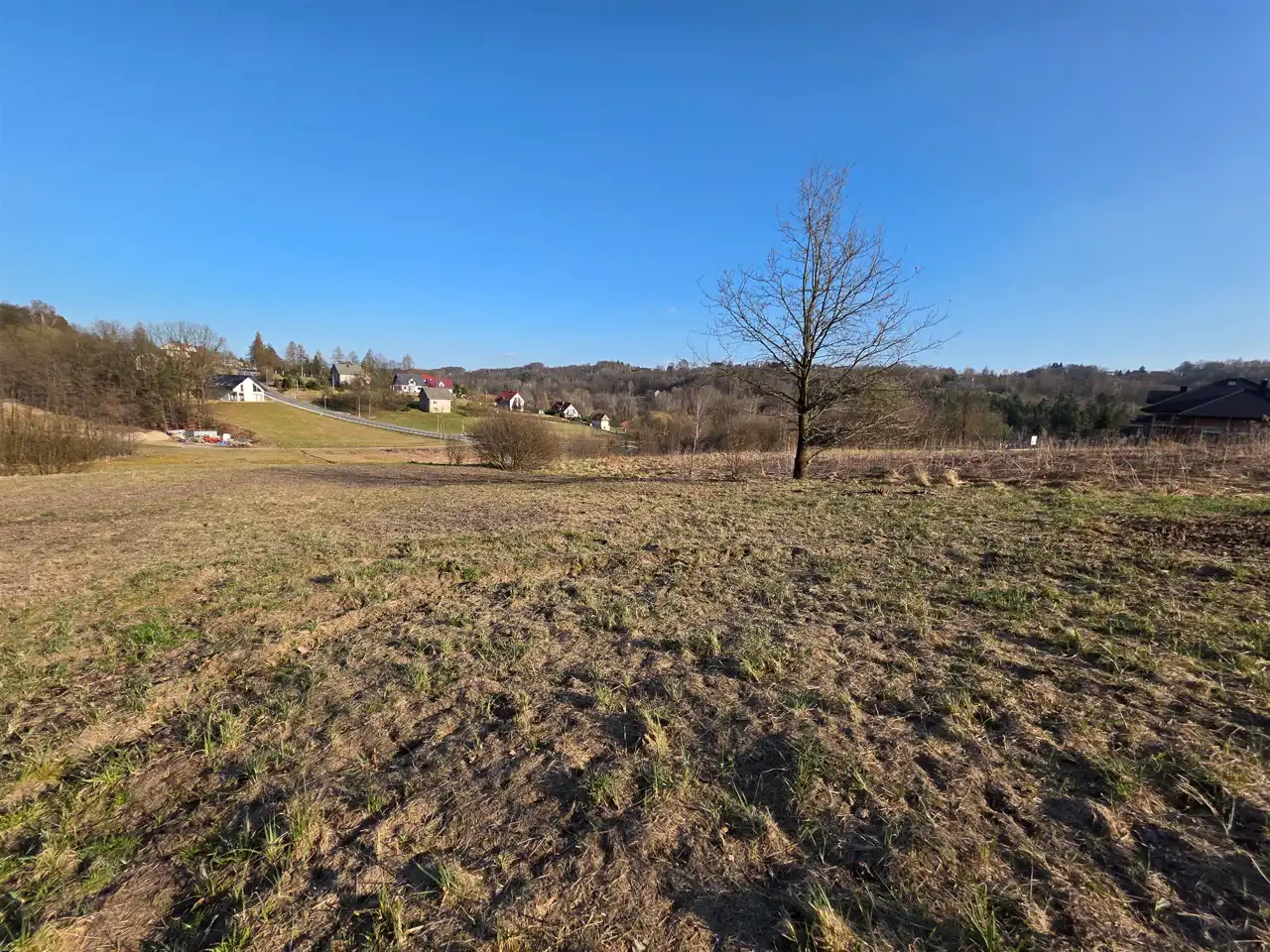 Działka w drugiej linii zabudowy, pochylona z ładnym widokiem.