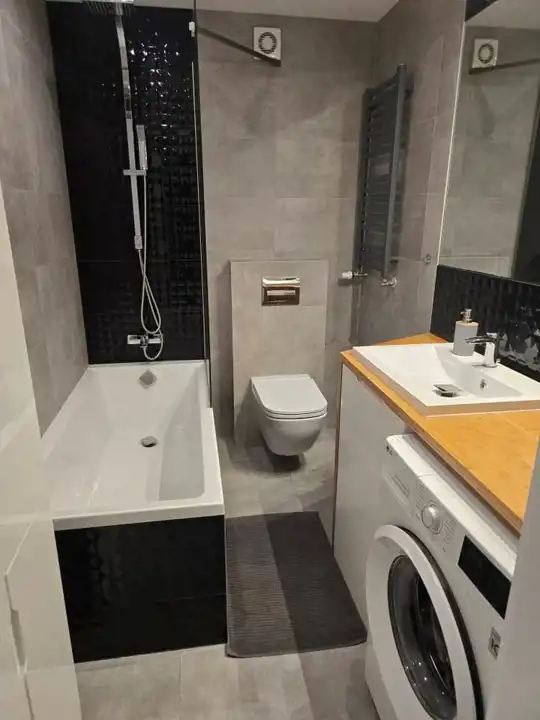 Podana cena zawiera pełne wyposażenie w którego skład wchodzi m.in. : meble, pralka, zmywarka, płyta indukcyjna etc,