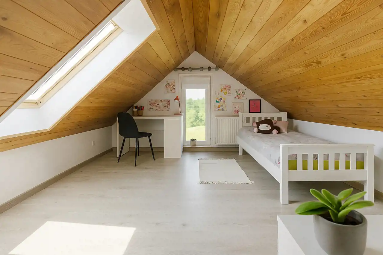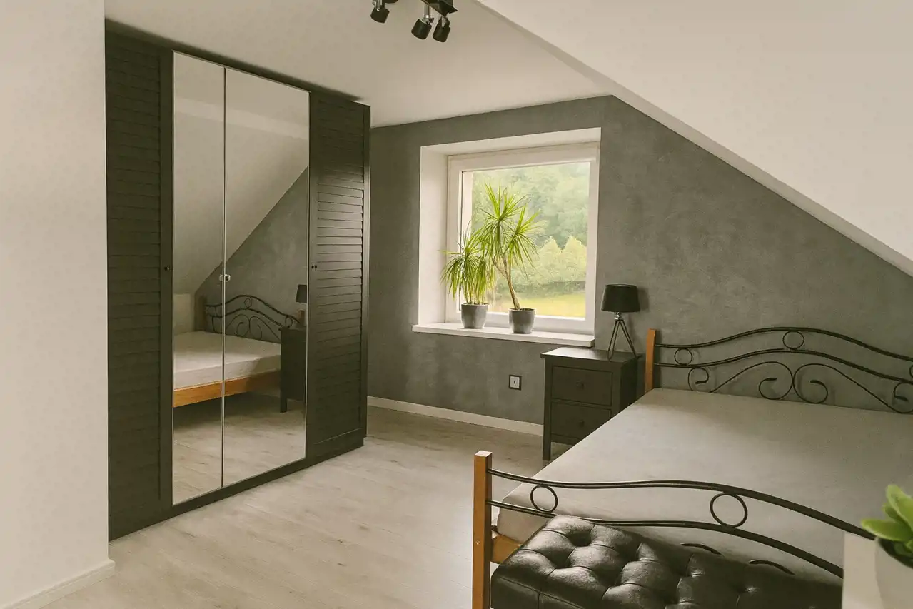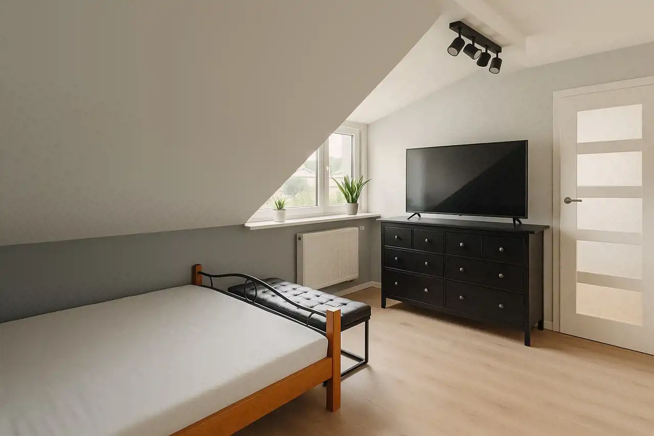 W jego skład wchodzi • Sypialnia – 11 m² • Łazienka – 3,6 m² • Salon z aneksem kuchennym – 18 m² • Dodatkowe poddasze – zaadaptowane na oddzielny pokój (ok. 19 m², powierzchnia nieujęta w KW).