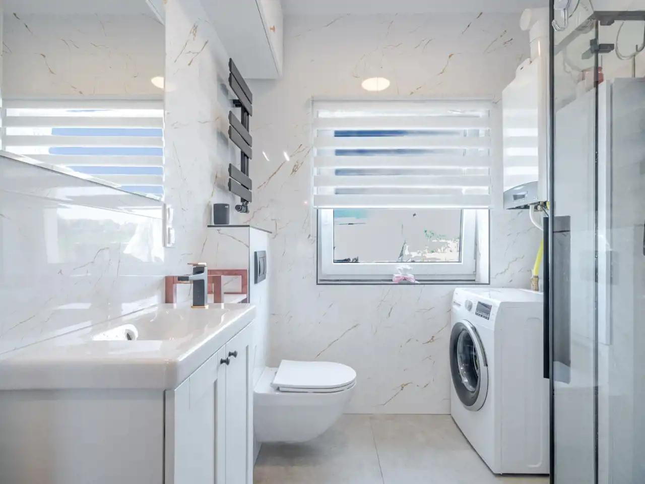 - łazienki z dużym oknem ,kabiną prysznicową i WC